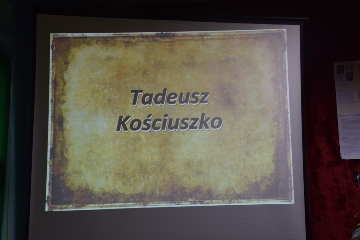 Jako pierwsza została nam zaprezentowana postać Tadeusza Kościuszki, określanego jako człowiek, który wyprzedzał swoje czasy. Był on generałem, który w 1794 roku stanął na czele powstania dającego Polakom nadzieję na odzyskanie utraconej niepodległości. Był też bohaterem Stanów Zjednoczonych, o których wolność zabiegał.