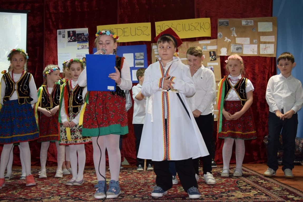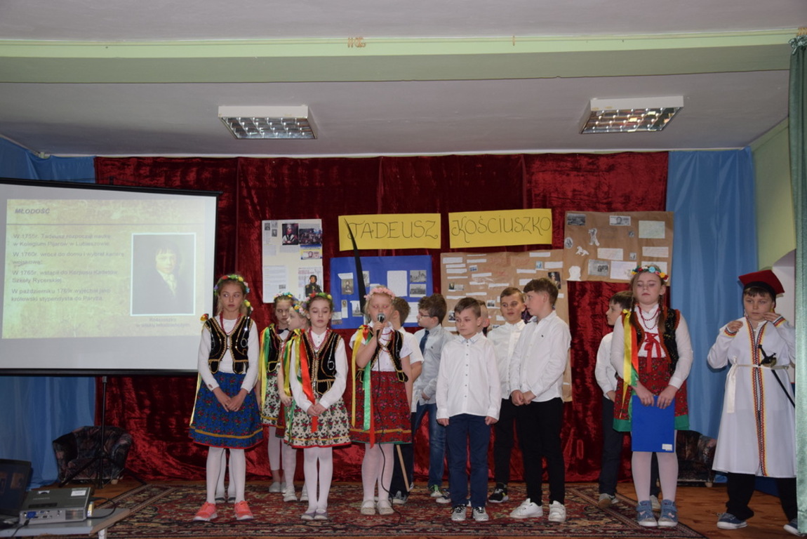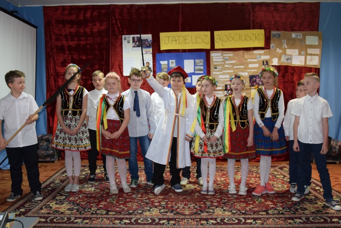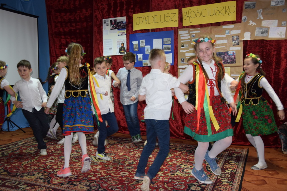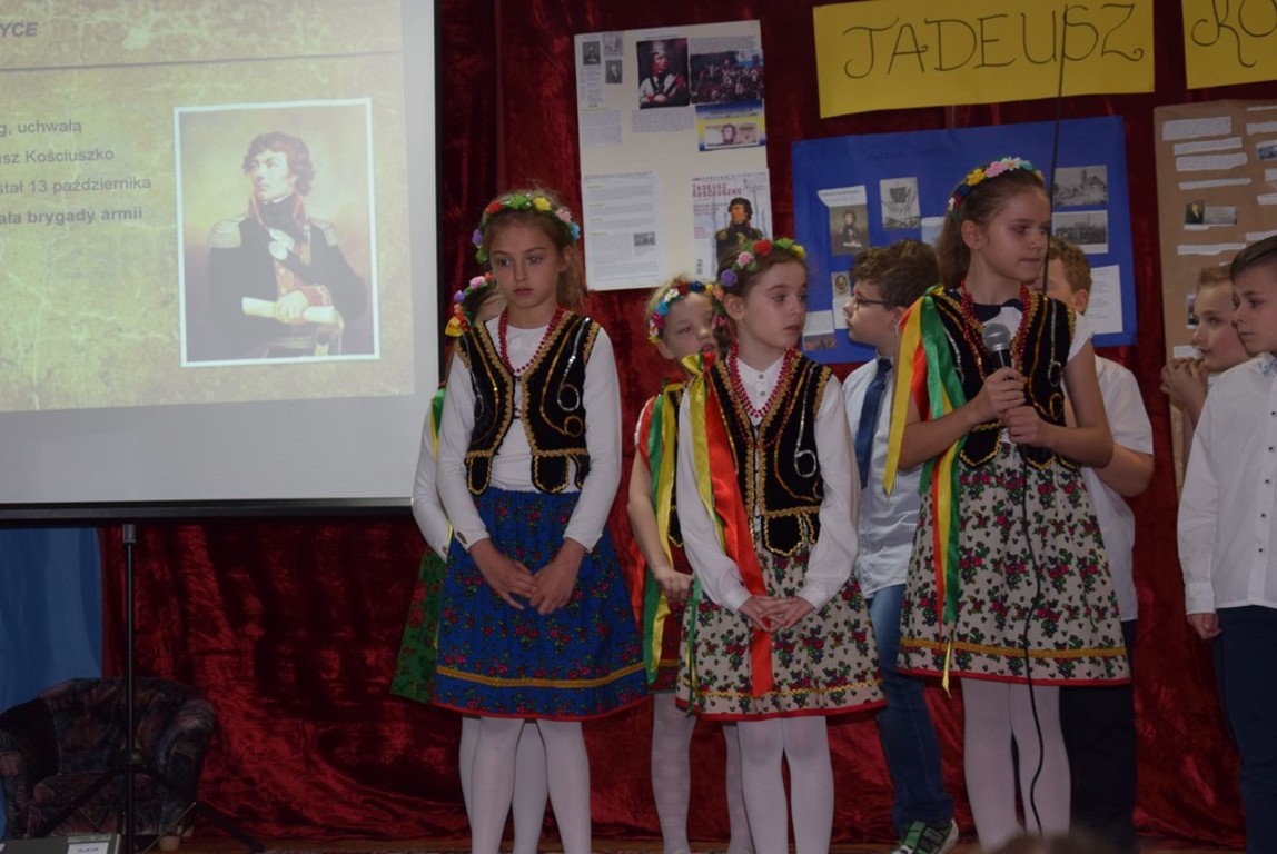 Klasa III przygotowała dla nas ciekawe i pouczające wystąpienie podparte prezentacją multimedialną i zakończone uroczo zatańczonym krakowiakiem – tańcem pochodzącym z okolic miasta, w którym w 1794 roku Tadeusz Kościuszko złożył uroczystą przysięgę wierności i oddania swojej ojczyźnie