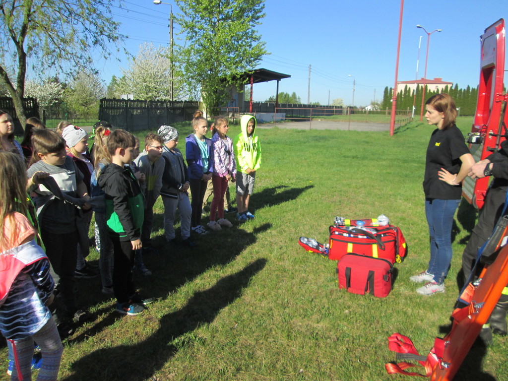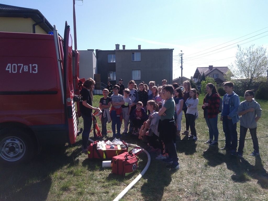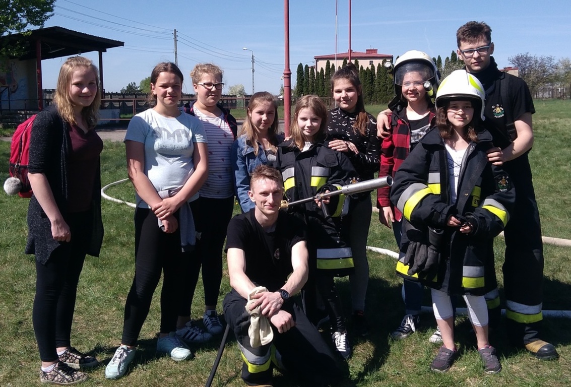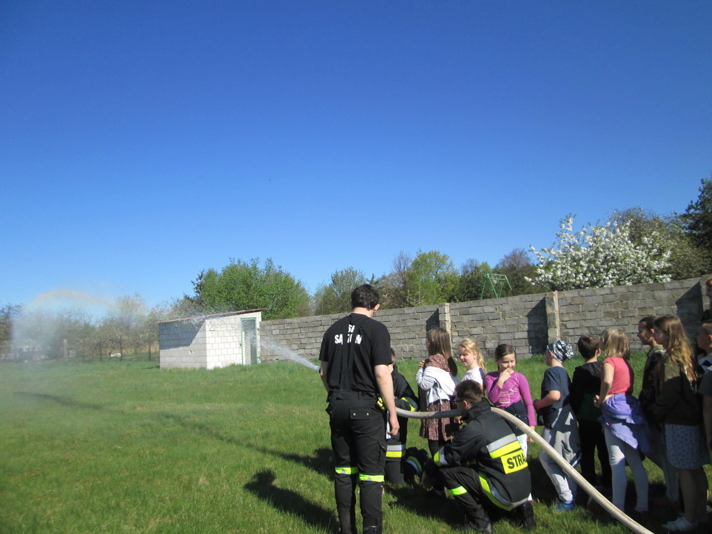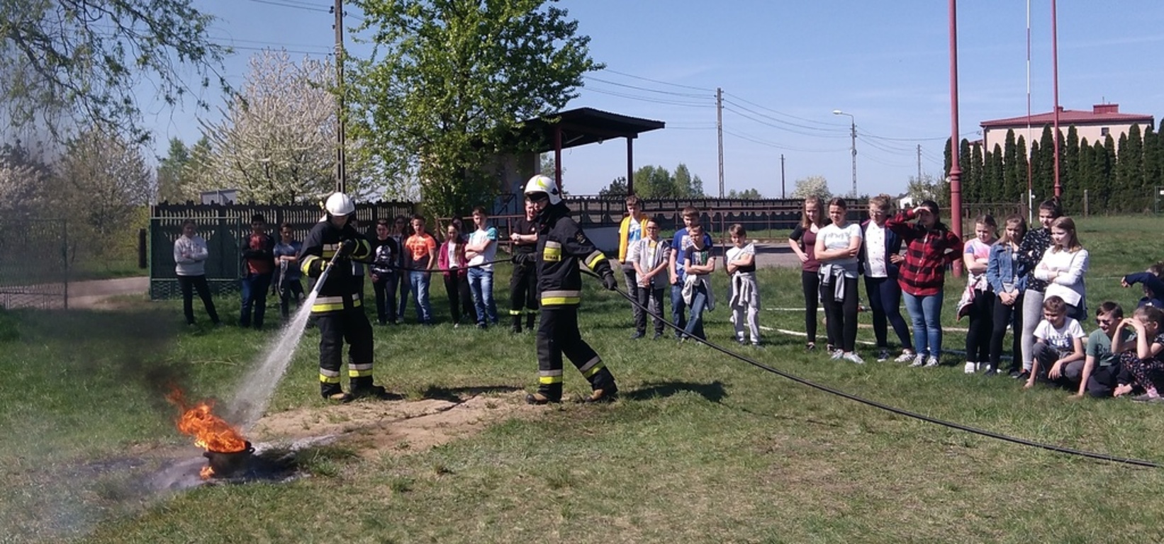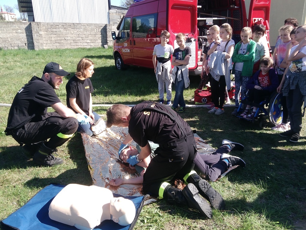 Uczniowie naszej szkoły w dniu 20 kwietnia uczestniczyli w warsztatach przygotowanych przez strażaków OSP Sączów. W trakcie zajęć na placu OSP strażacy przeprowadzili dla uczniów krótki kurs pierwszej pomocy z użyciem specjalistycznego sprzętu ratowniczego. Uczniowie uczestniczyli też w pokazie gaszenia ognia, pogadanka nawiązywała do czasu wiosennych zagrożeń pożarami. Jak powiedzieli nam strażacy od początku roku uczestniczyli już w 15 akcjach gaszenia. Młodzież miała okazję spróbować swoich sił w trafeniu wodą do celu. Serdecznie dziękujemy za wspaniale przygotowane warsztaty, poczęstunek i mamy nadzieję że uczniowie naszej szkoły „zarażeni” pasją ratowania zasilą w przyszłości szeregi sączowskiej jednostki OSP.
