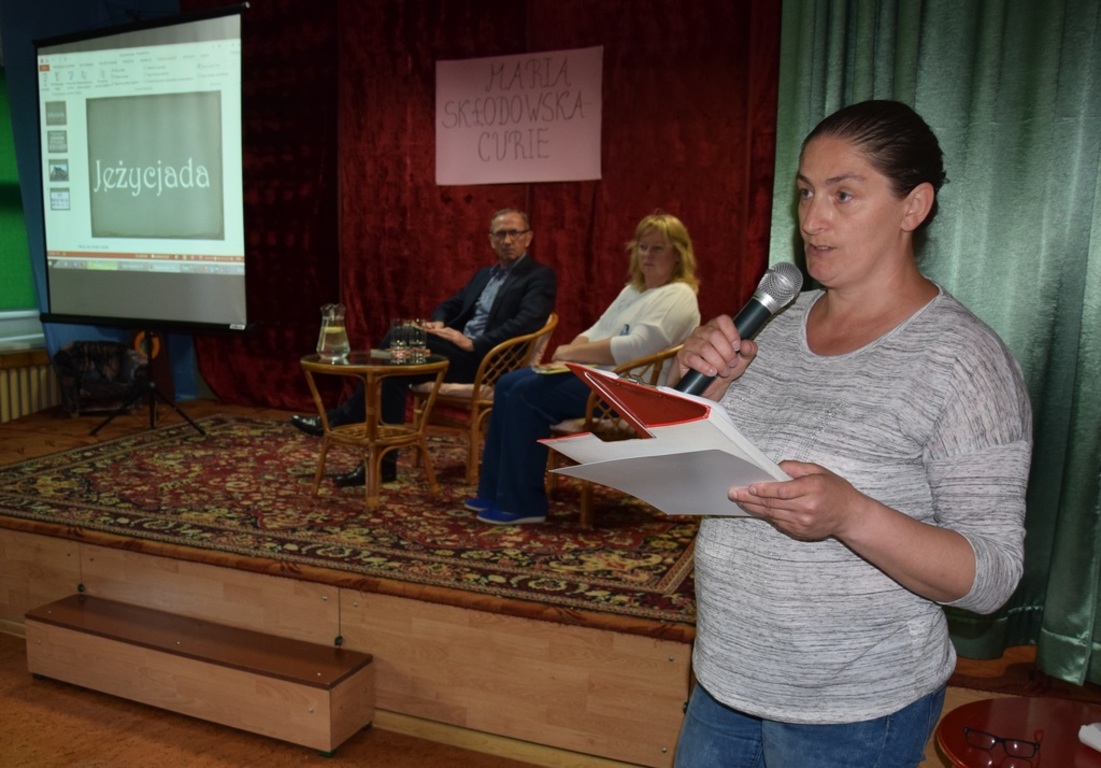 Pan dyrektor Stanisław Fijołek przybliżył nam postać Aurelii Jedwabińskiej z dziewiątej części serii: Dziecko piątku, a Pani pedagog Krzysztofa Urbańska posiłkując się fragmentami trzeciej części serii: Kwiat kalafiora, przedstawiła historię powstania młodzieżowej Dyskusyjnej Grupy Eksperymentalny Sygnał Dobra (w skrócie ESD), która to podsłuchiwana przez wścibską sąsiadkę błędnie posądzona została o zażywanie LSD.