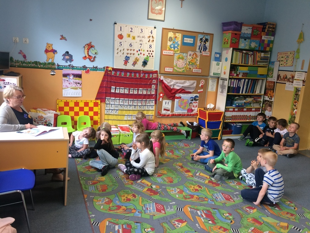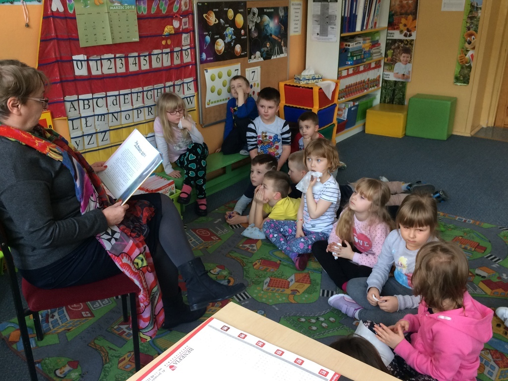 Dzieci z wielkim skupieniem słuchały opowiadań, które dla nas czytała pani dyrektor. Dziękujemy za poświęcony nam czas i zapraszamy znowu.