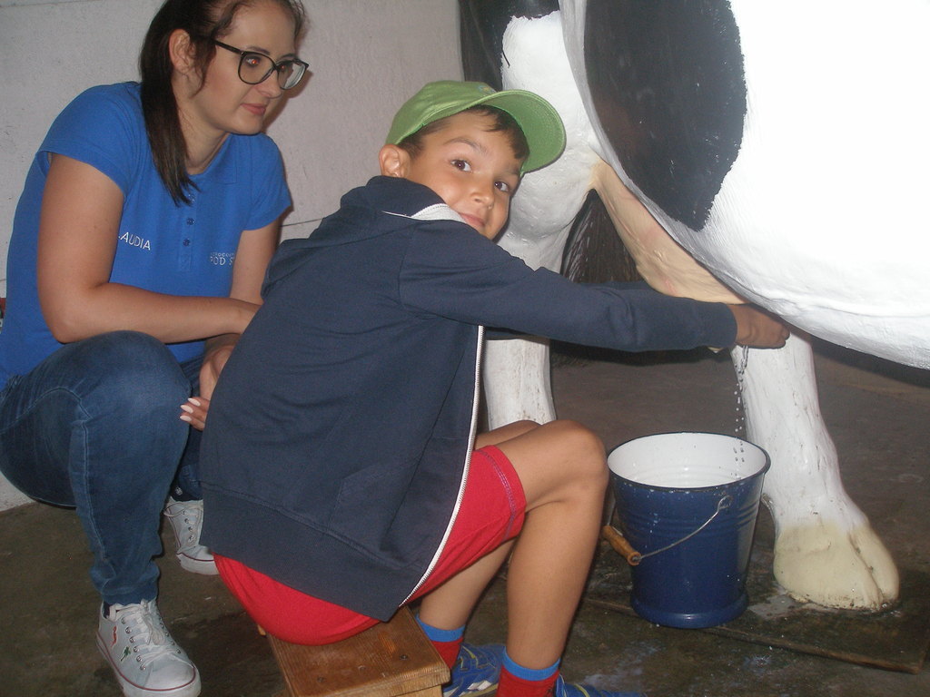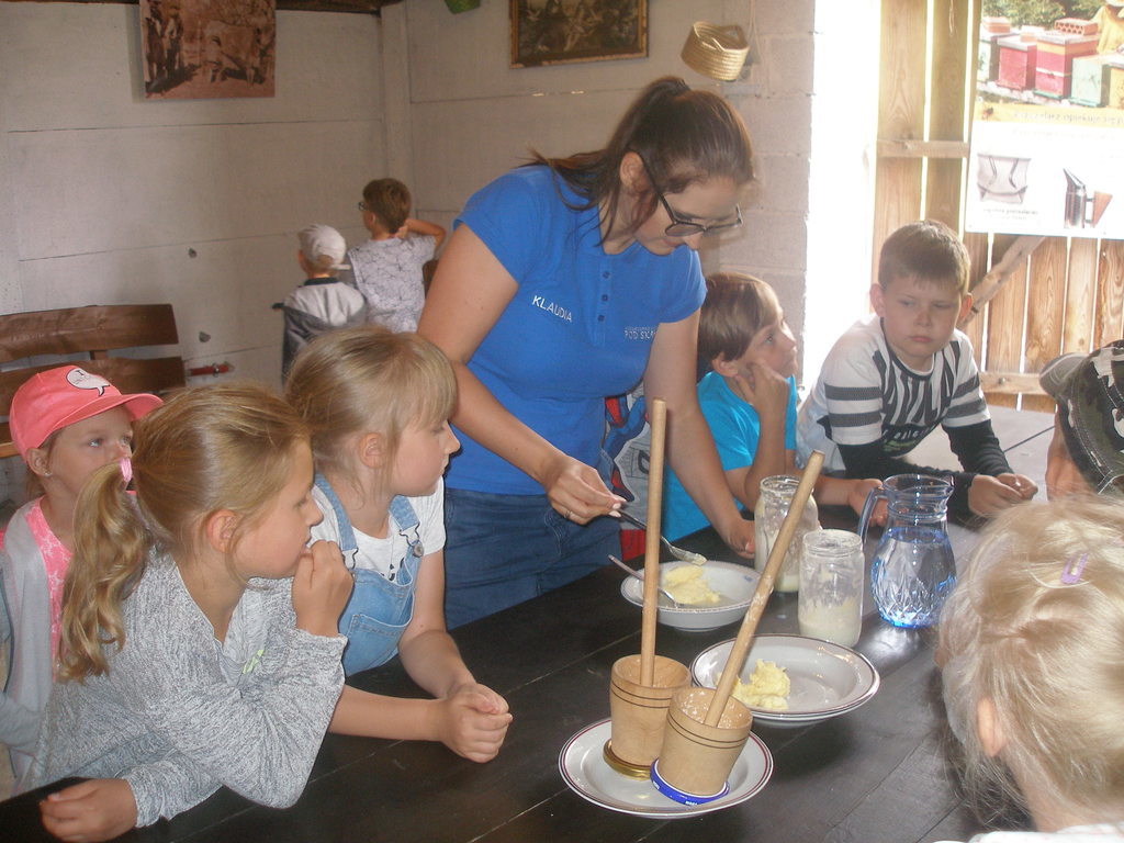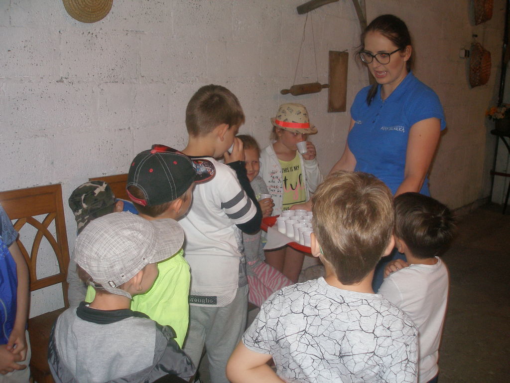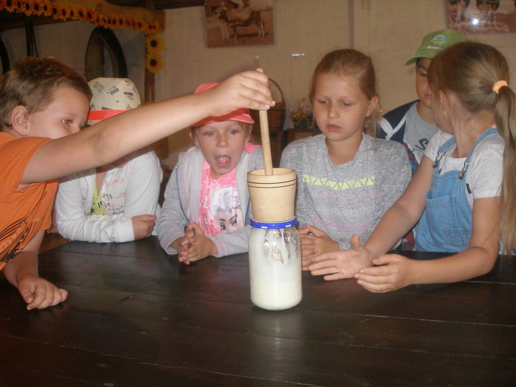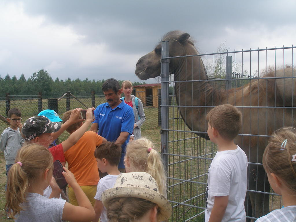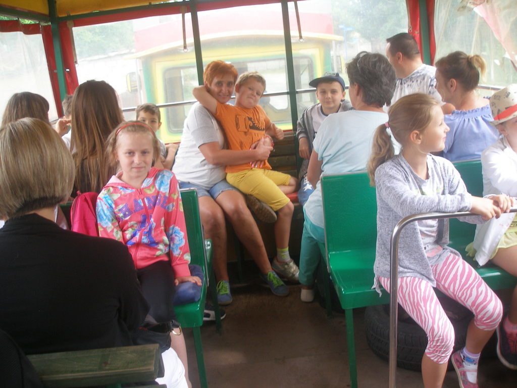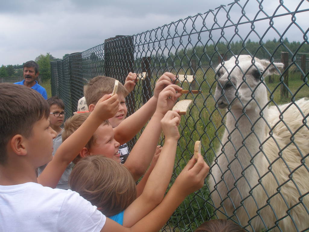 Program wycieczki był bardzo urozmaicony i niezwykle atrakcyjny. Po przyjeździe na miejsce na dzieci i ich gości czekał poczęstunek. Po chwili odpoczynku wszyscy uczestnicy wycieczki udali się na przejażdżkę kolejką „Jurajski Express”, podczas której można było podziwiać piękne jurajskie krajobrazy. Najmłodsi uczestnicy wycieczki wzięli udział w warsztatach edukacyjnych „Skąd się bierze mleko?”. Wędrując „mleczną drogą” dzieci dowiedziały się kto daje nam mleko i własnoręcznie wydoiły sympatyczną krówkę Marcysię. Dzieci poznały wielką magię natury i „przeżyły maślaną” przygodę, w czasie której poznały narzędzia i technikę wyrobu masła. Zwieńczeniem mlecznej przygody była degustacja krowiego mleka i produktów mlecznych, w tym własnoręcznie zrobionego masła. Atrakcją wycieczki była wizyta w „Zwierzyńcu pod Skałką”. Mali turyści z rodzicami zwiedzili największy prywatny Zwierzyniec na Śląsku. Z ciekawością przyglądali się i karmili wielbłąda, króliki, lamy, kózki, baranki, osiłki i piękne kaczuszki Mandarynki. Paw, jak to paw nie chciał się częstować. Wolał pozować do zdjęć chwaląc się swoim pięknym pawim ogonem. Dzieci i goście zwiedzili również Skansen Wsi Jurajskiej. W tym miejscu, szczególnie u starszych uczestników wycieczki obudziły się wspomnienia i sentymenty. To, co dla dzieci było dziwne, dla starszych wyglądało znajomo i swojsko. Na wycieczce był też czas na pokrzepienie ciała. Wszyscy uczestnicy skorzystali z posiłku, jakim były pyszne kiełbaski z grilla i swojskie przysmaki. Dla dzieci na osłodę gospodarze przygotowali słodką watę cukrową. Na zakończenie wizyty w gospodarstwie „Pod Skałką” przyszła pora na szaleństwa w parku „Kraina Marzeń Dzieci”, gdzie na dzieci czekały dmuchane zamki, trampoliny, tyrolka i boisko do gry w piłkę nożną.