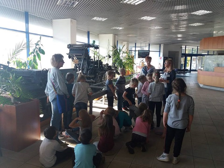 Obejrzeliśmy aktualną wystawę, a także stare maszyny drukarskie.