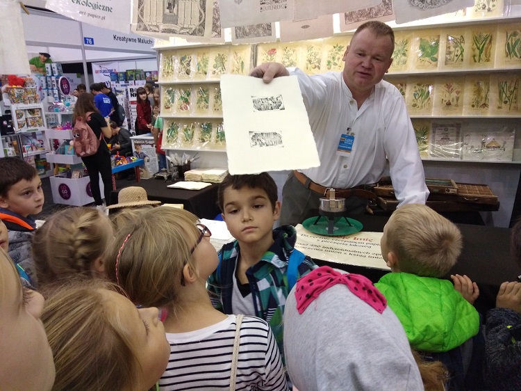 Mogliśmy zaczerpnąć fachowej porady dotyczącej wyboru lektur na stoisku zwanym „Ostry dyżur literacki”, a także zapoznać się z techniką ilustrowania książek przy pomocy drzeworytów na dostępnych Warsztatach Linorytniczych zorganizowanych przez Muzeum Sztuki Drukarskiej i Papiernictwa im. Fiola i Fiodorowa.