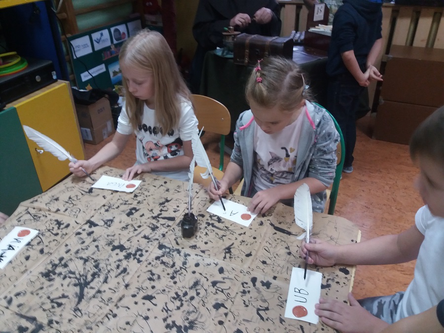 - pisanie gęsim piórem oraz odciskanie pieczęci lakowych