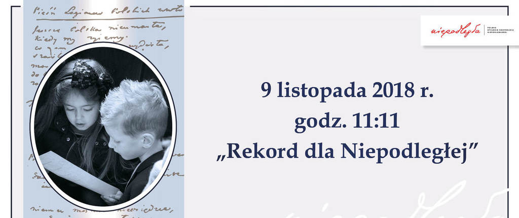 Akcja „Rekord dla Niepodległej” została ogłoszona przez Minister Edukacji Narodowej oraz Radę Dzieci i Młodzieży przy Ministrze Edukacji Narodowej. W całym kraju ponad 4,8 mln uczniów i prawie 470 tys. nauczycieli i pracowników oświaty z 24 tys. przedszkoli, szkół oraz placówek oświatowych zgłosiło swój udział w akcji „Rekord dla Niepodległej”."