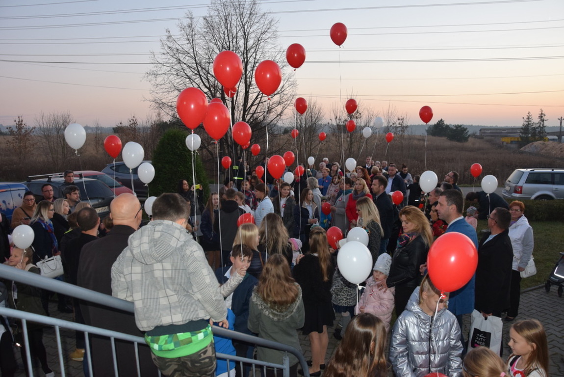 Najliczniejszą grupę uczestników stanowiła społeczność Zespołu Szkolno – Przedszkolnego w Sączowie, którą tworzyły przedszkolaki, uczniowie, nauczyciele z panią dyrektor Małgorzatą Fijołek oraz pracownicy. Dzieciom towarzyszyli rodzice i najbliżsi członkowie rodzin.