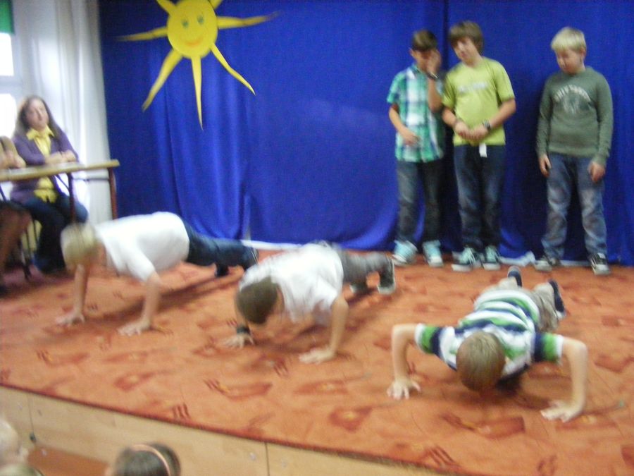 Właściwie to Dzień Chłopaka był 1-szą WIELKĄ imprezą przygotowaną przez SU czyli od dziewczyn dla chłopaków...Wybrałyśmy sześciu wspaniałych chłopców z klas I-VI, którzy stanęli do boju o tytuł "Super Chłopaka". Z klasy I-Bartosz Twardokęs, kl.II - Przemek Lazar, kl.III - Paweł Wójcik, klasa IV to Grzesiu Flak, V- Darek Drózd i klasę VI reprezentował Szymon Dyszy. Nasi koledzy dzielnie uczestniczyli w próbie odwagi, wytrzymałości i mądrości. Po długich dogrywkach jury w składzie pani dyrektor Małgorzaty Fijołek, pani Izy Cebuli oraz pani Iwony Szymkiewicz ogłosiły Super Chłopakiem klasy I-III Bartosza Twardokęsa. Super Chłopakiem klasy IV-VI został Grzegorz Flak.