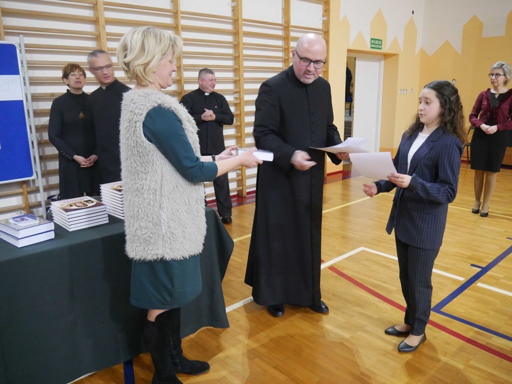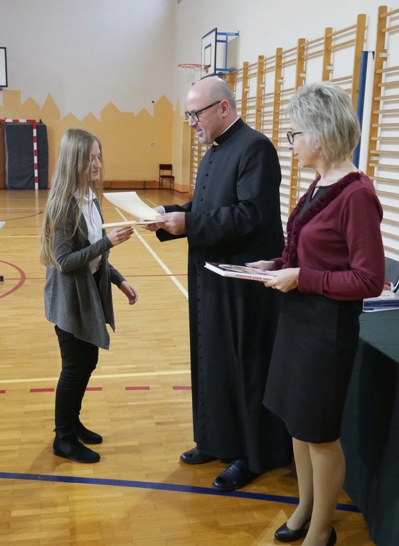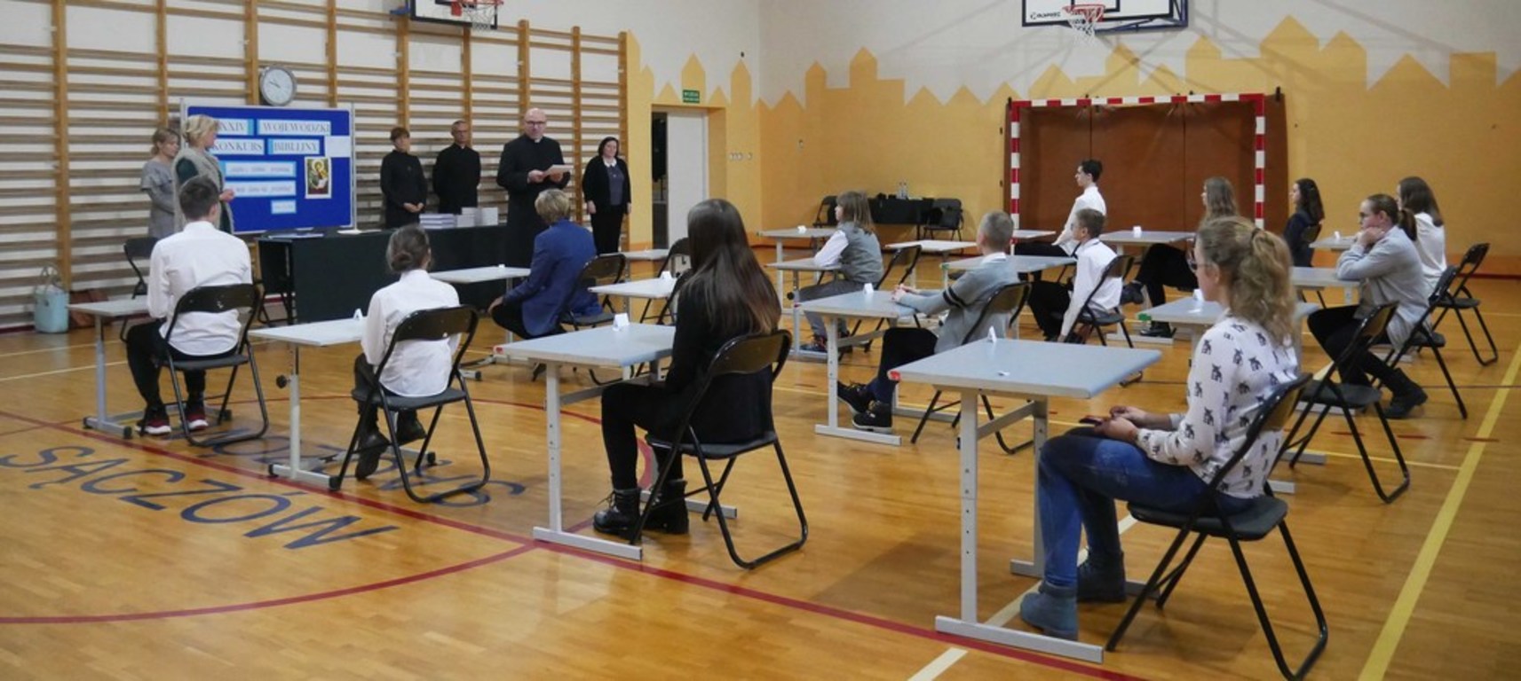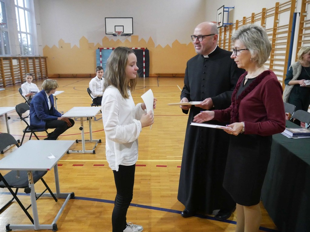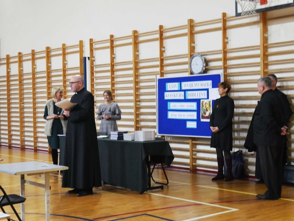 Naszą szkołę reprezentowały: Oliwia Elzner, Julia Kocot i Natalia Łukasik. Uczestnicy konkursu zmagali się z pytaniami z zakresu znajomości Ewangelii Św. Łukasza. Przez 45 minut udzielali w teście pisemnym odpowiedzi na pytania zamknięte, otwarte, uzupełniali cytaty. Tegoroczny test wymagał również znajomości mapy Ziemi Świętej a nawet rozpoznawania ewangelicznych postaci na obrazie Rembranta.