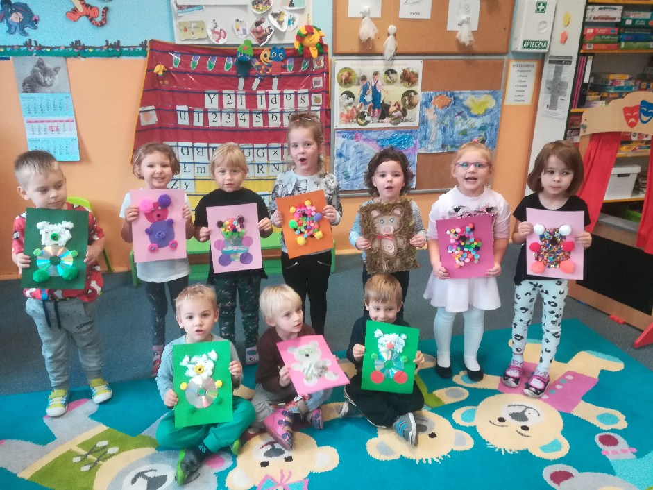 W naszym przedszkolu świętowanie dnia pluszowego misia rozpoczęliśmy od wzięcia udziału w konkursie plastycznym organizowanym przez Przedszkole w Siemoni. Każda grupa zaangażowała się bardzo aktywnie. Wszystkie prace były śliczne i ciekawe. Najstarsze przedszkolaki rozpoczęły wykonanie pracy od warsztatów plastycznych, w czasie których poznały proste metody samodzielnego narysowania postaci misia. W konkursie zostali wyróżnieni – Lucjan Olszówka z grupy Maluchy, Kalina Pławska z grupy Średniaki oraz dwóch Starszaków: Marysia Mazan i Patryk Karch.