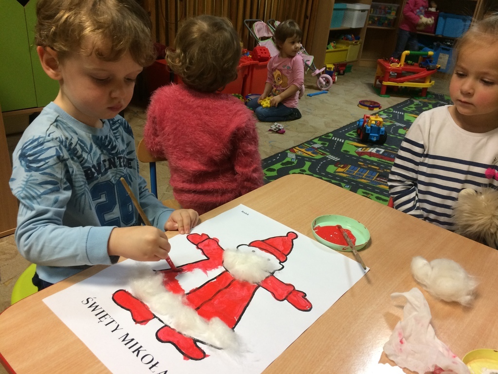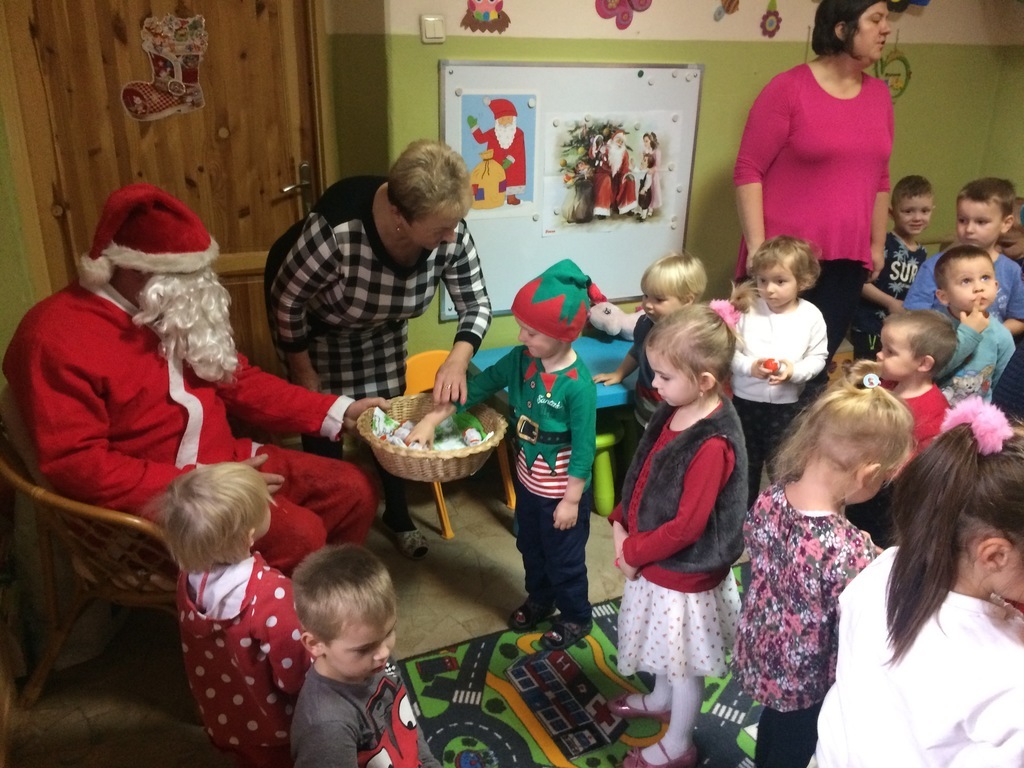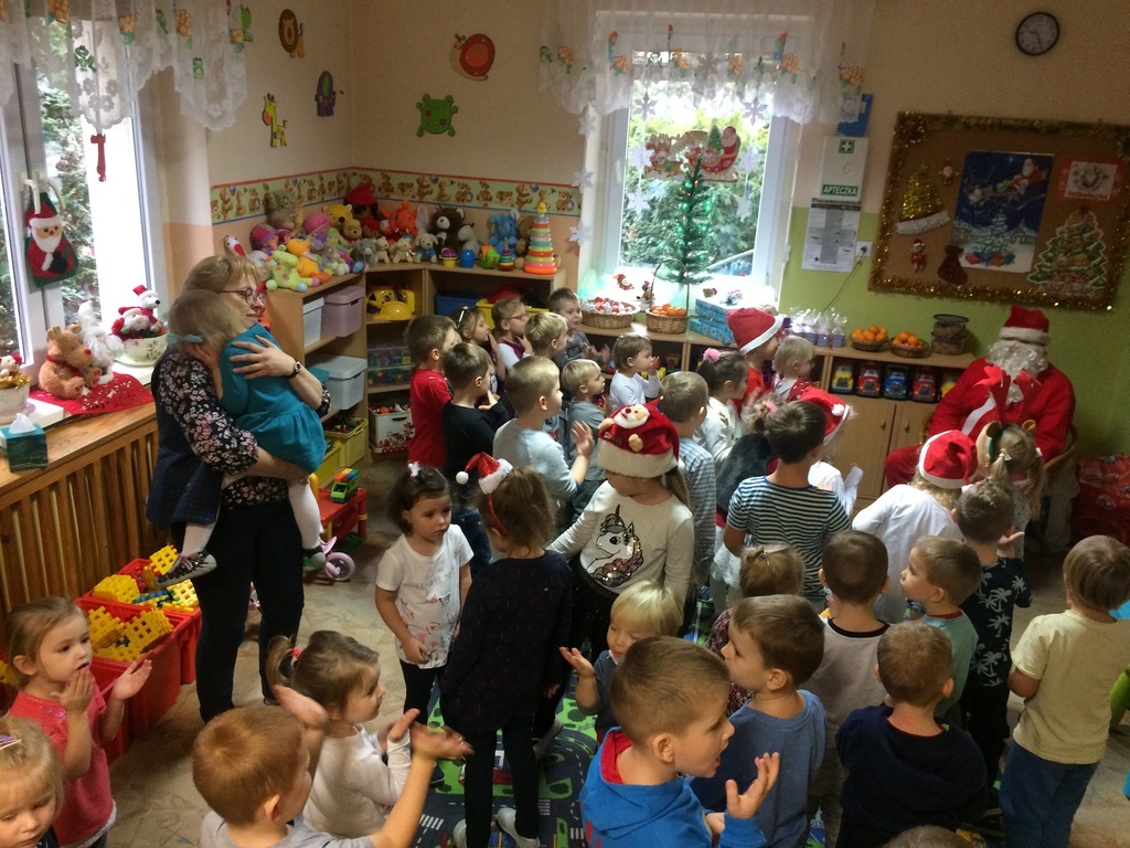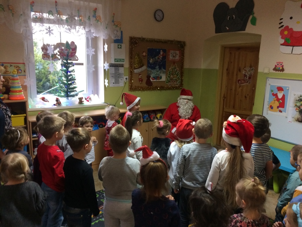 Czekając na wizytę Świętego Mikołaja wszystkie przedszkolaki pięknie wystroiły swoje sale i korytarz. Powstały piękne prace plastyczne, które ozdabiają nasze przedszkole. Wszyscy spotykaliśmy się codziennie, ucząc się piosenki i wierszyka na powitanie naszego specjalnego gościa. Dzisiaj po śniadanku wszyscy usłyszeli głośny dźwięk dzwonka i w drzwiach ujrzeliśmy Świętego Mikołaja. Nasza radość była ogromna, ponieważ wszystkie dzieci czekając na prezenty starały się być bardzo grzeczne. Mikołaj jak co roku obdarował nas wszystkich prezentami. Bardzo dziękujemy wszystkim pomocnikom Mikołaja za udział w organizacji naszej przedszkolnej uroczystości :)