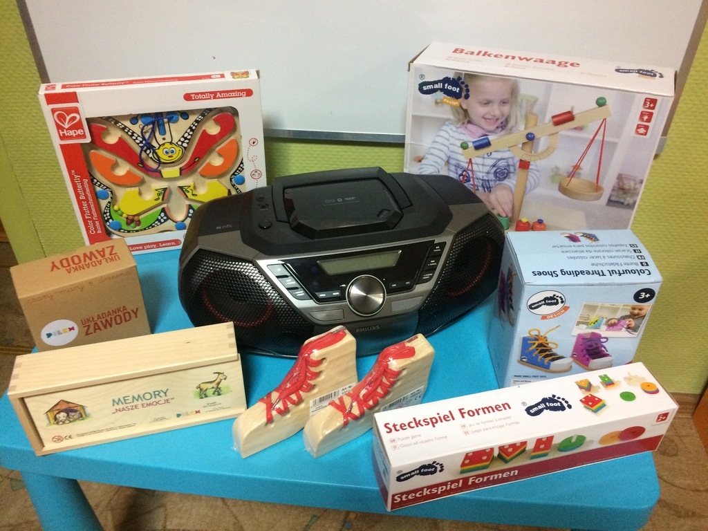 W naszym przedszkolu nie brakuje osób, które ochoczo nas obdarowują. Jeśli mamy jakieś drobne potrzeby to zawsze możemy liczyć na wsparcie finansowe. Co roku z okazji święta babci i dziadka nasi goście składają na ręce Pani Dyrektor darowiznę, która trafia na konto Rady Rodziców. W tym roku pieniążki długo czekały, aż nadejdzie odpowiednia potrzeba dla dzieci. Z tegorocznej składki od babć i dziadków został zakupiony sprzęt audio oraz pomoce do ćwiczeń sensorycznych rozwijający wszechstronny rozwój dziecka wg metody Marii Montessori. Przedszkolaki bardzo dziękują:)