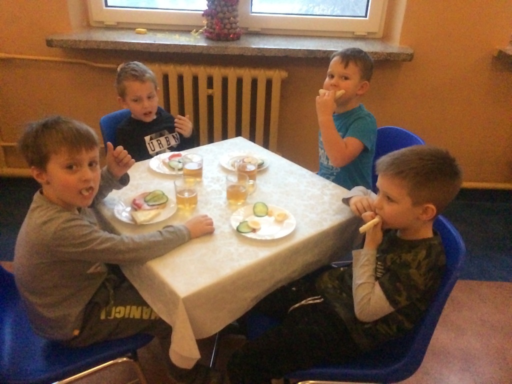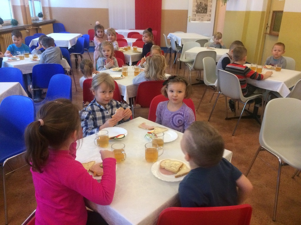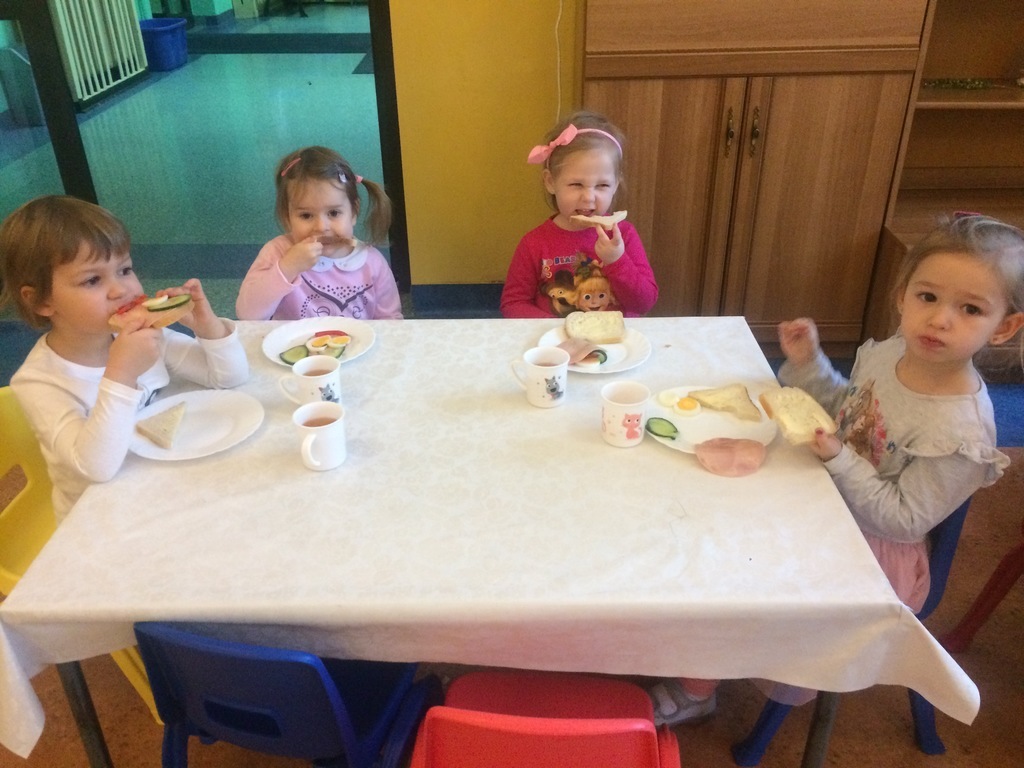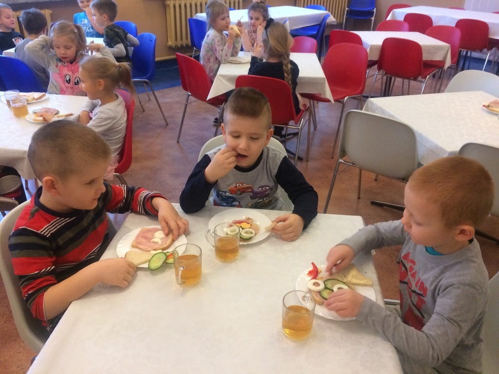 Takie rozmaitości spotykamy często na naszych talerzach. Przedszkolaki często delektują się smakowitymi przysmakami przygotowanymi przez panie kucharki. Dzisiaj na śniadaniu mogliśmy zajadać piękne, zdrowe i kolorowe kanapeczki, które zachęcająco się do nas uśmiechały. Podwieczorek zaprosił nas również na niespodziankę – smaczne biszkopty zapraszały na słodką chwilkę. „Przedszkole Promujące Zdrowie” - ten tytuł, który już dawno zdobyliśmy, cały czas jest dla nas na pierwszym miejscu. Wiele działań z programu jest realizowana na bieżąco. Bardzo dziękujemy paniom z kuchni za te piękne i smaczne pyszności.