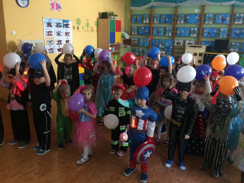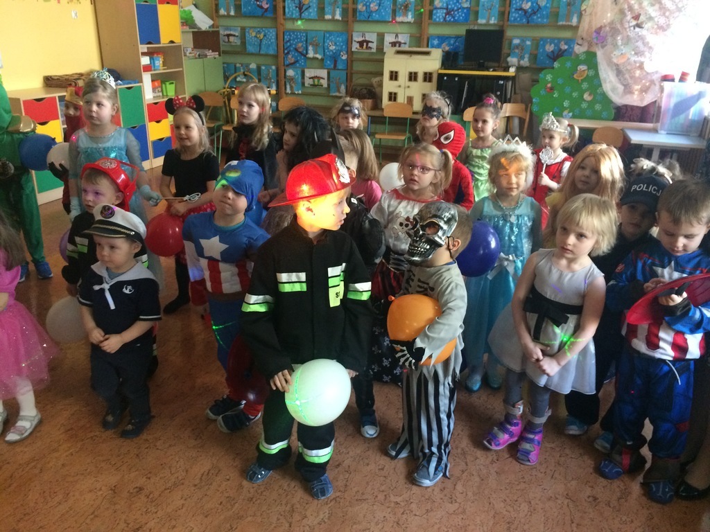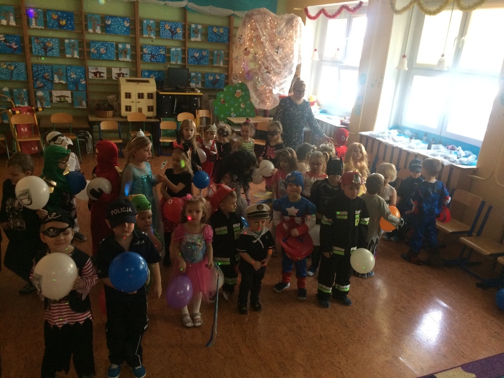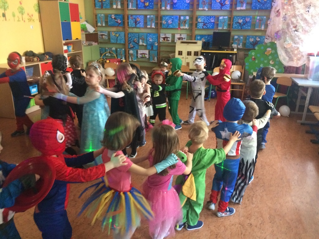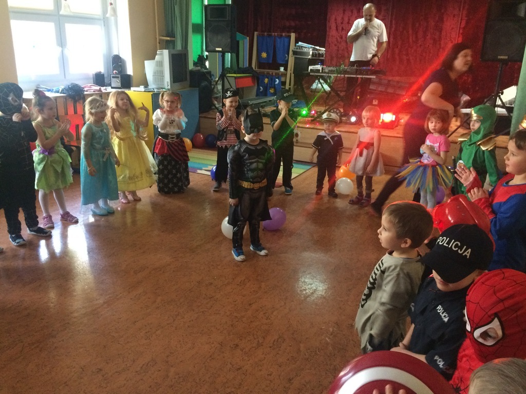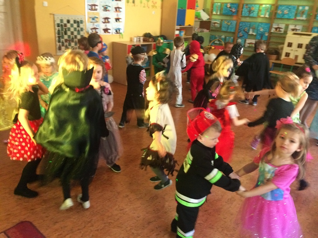 W piątek 8 lutego nasze przedszkolaki świetnie się bawiły na balu zorganizowanym w przedszkolu. Muzyka i piękna oprawa świetlna towarzyszyła super zabawie. Dzieci prezentowały się w ciekawych strojach, które jak zawsze z ochotą i dużym zaangażowaniem organizują rodzice. Tańce, pląsy przerywane były tylko na chwilowe poczęstunki dla dzieci. W tym dniu swoje urodzinki obchodził Leon z grupy Średniaki – głośne Sto lat odśpiewały dla niego wszystkie przedszkolaki – on w zamian częstował urodzinowymi słodkościami.
