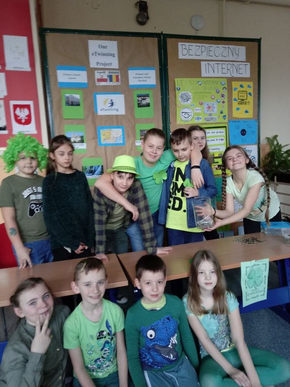 W niedzielę 17 marca Irlandczycy świętowali swoje narodowe święto: Dzień Świętego Patryka. My również postanowiliśmy nawiązać do tego wydarzenia i zorganizowaliśmy już w piątek 15 marca Dzień Św. Patryka w naszej szkole. Najważniejszą tradycją obchodów tego święta jest noszenie ubrań w kolorze zielonym, nawiązującym do krajobrazu wyspy i koniczyny, która jest symbolem Irlandii. Wielu uczniów włączyło się we wspólną zabawę i przyszło w tym dniu „na zielono”. Podczas przerw rozbrzmiewała muzyka irlandzka. Uczniowie mieli okazję spróbować zielonych ( i nie tylko ) słodkości i napojów, które przez większość przerw sprzedawała klasa 6. Na lekcjach w tym dniu oglądaliśmy prezentacje i pisaliśmy artykuły o patronie Irlandii. Jednym z najważniejszych symboli Dnia Świętego Patryka jest oczywiście trójlistna koniczyna (shamrock), której to - zgodnie z legendą - św. Patryk użył, by pokazać czym jest Trójca Święta. Podczas przerw część uczniów poszukiwała jednak nie trzylistnych, ale czterolistnych koniczynek, które z odrobiną szczęścia można było zamienić na dobrą ocenę, jeśli znało się odpowiedzi na zadane pytania z języka angielskiego.