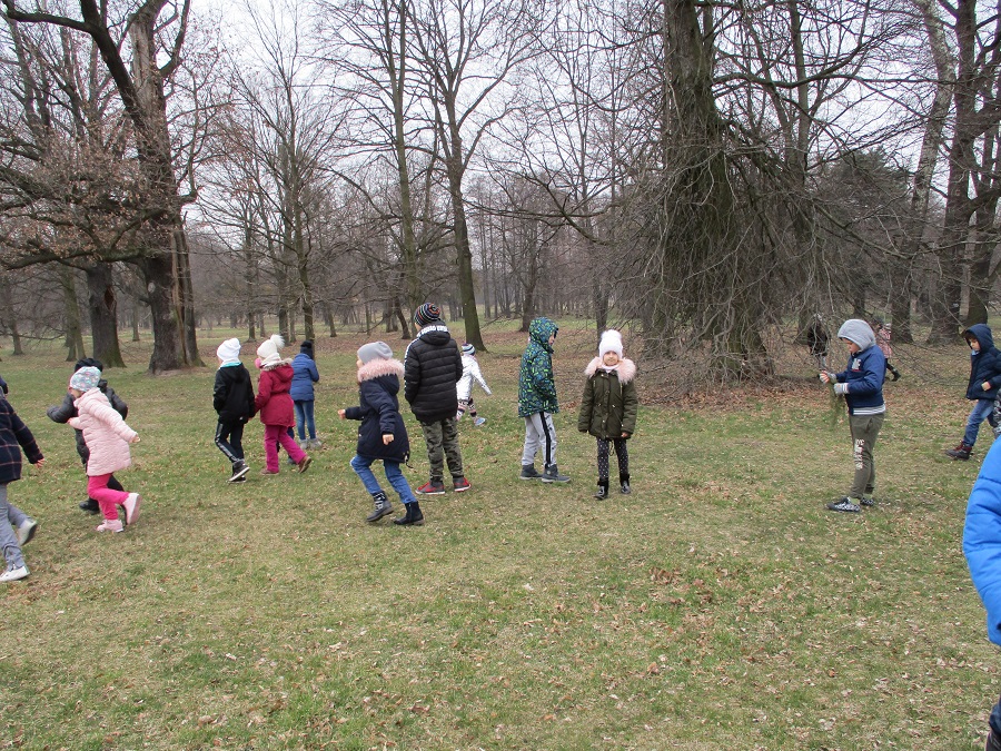 W pierwszym dniu wiosny 21 marca 2019 r. uczniowie klasy I i II wyruszyli w podróż do parku w Świerklańcu, aby sprawdzić, czy wiosna już przyszła. Pogoda spisała się na medal. Chociaż słoneczko rzadko wyglądało zza chmur, to temperatura zachęcała do spacerów. Dzieci spacerowały parkowymi alejkami i szukały oznak wiosny. Przed sokolim wzrokiem małych przyrodników nie ukrył się żaden szczegół wskazujący na przyjście wiosny. Dzieci szybko zauważyły małe pączki na drzewach, nieśmiało kwitnącą forsycję i pierwsze wiosenne roślinki i kwiatki, które śmiało wychylały się z trawy. Udało się nawet zobaczyć klucz żurawi i stado kolorowych kaczek pływających po świerklanieckim zalewie. Na powitanie dzieci ze swoich dziupli wyszły wiewiórki! Pięknym widokom z budzącą się do życia przyrodą towarzyszył świergot ptaków. Wszystko razem stanowiło wielki dowód w sprawie.