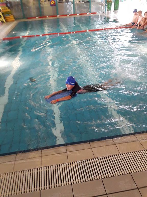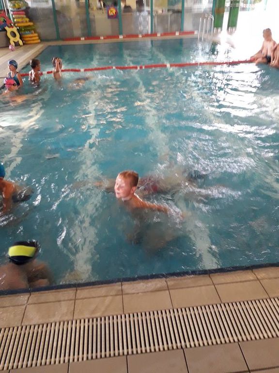 16 września 2019 r. wszyscy drugoklasiści po raz pierwszy uczestniczyli w zajęciach na basenie w ramach kolejnej edycji ministerialnego projektu Powszechnej Nauki Pływania – „Umiem Pływać”.