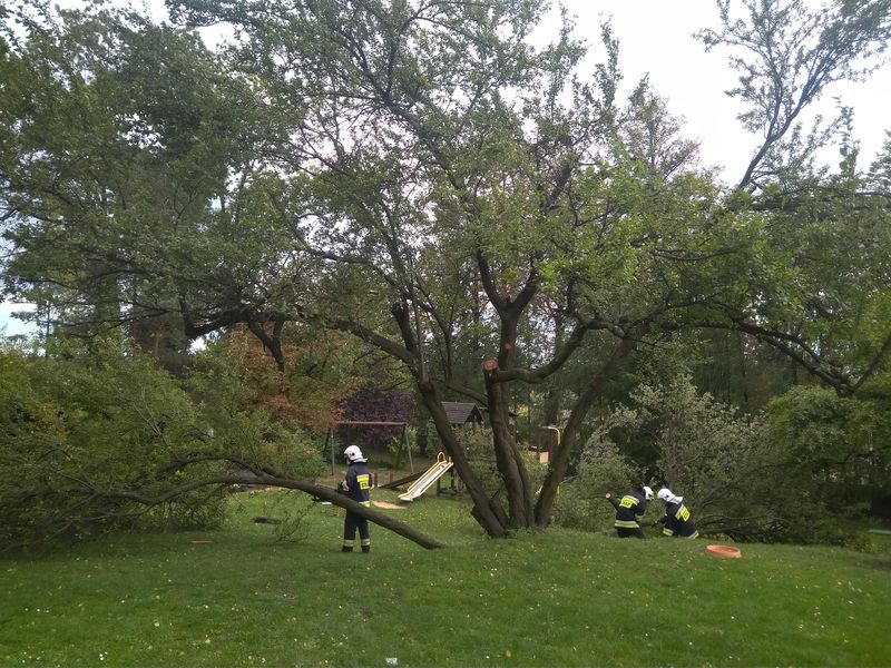Potrzebny był specjalistyczny sprzęt i silne ręce. Jak zawsze w takich sytuacjach z pomocą pospieszyli strażacy ochotnicy. Druhowie OSP w Sączowie uzbrojeni w piły i inne narzędzia uprzątnęli połamane drzewo i uporządkowali teren po wiatrołomie.