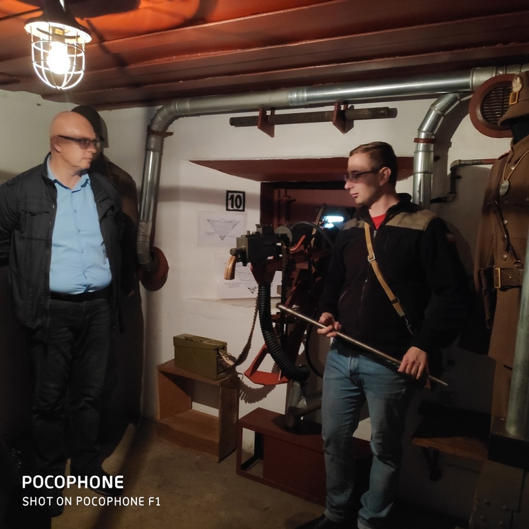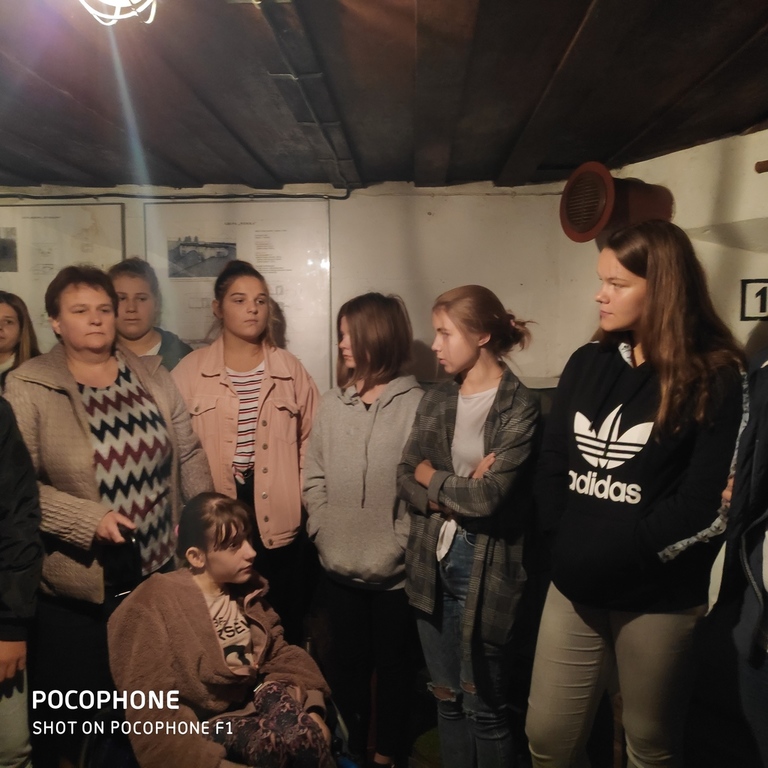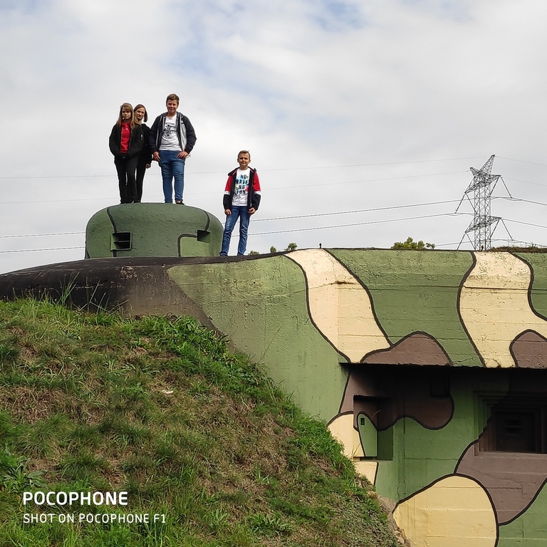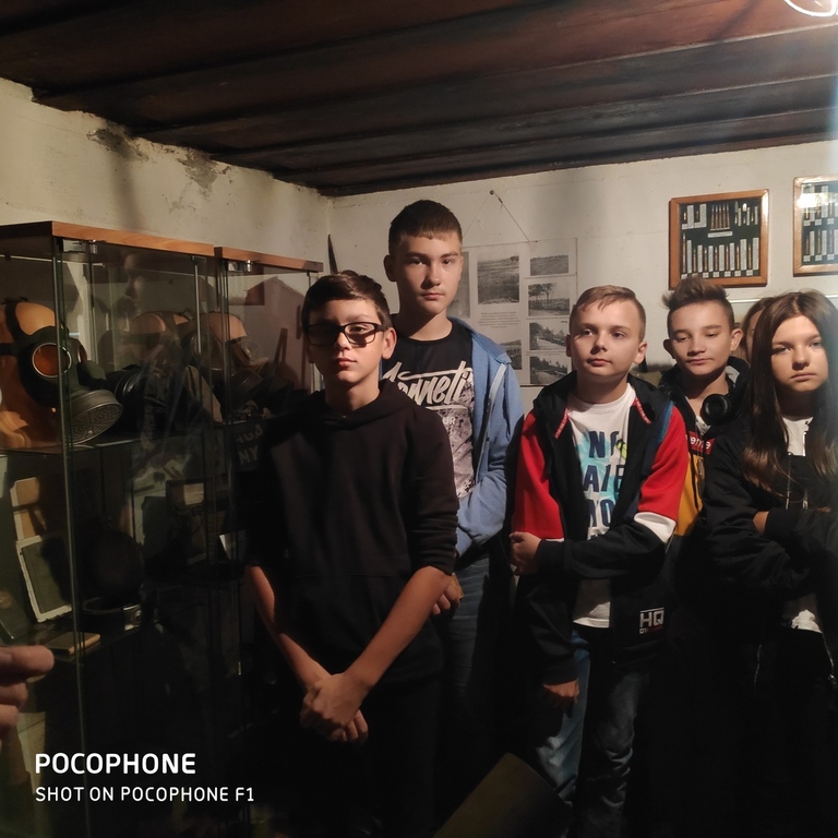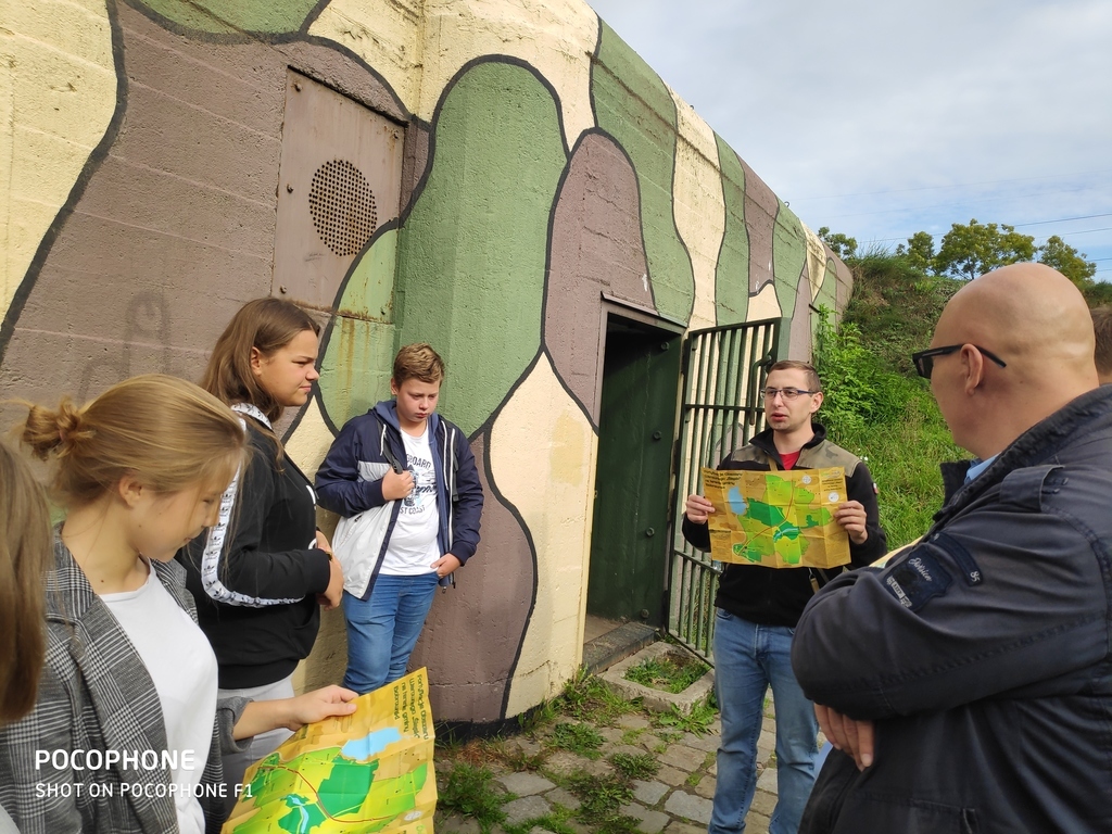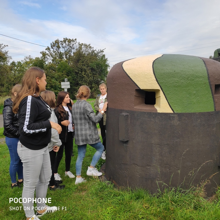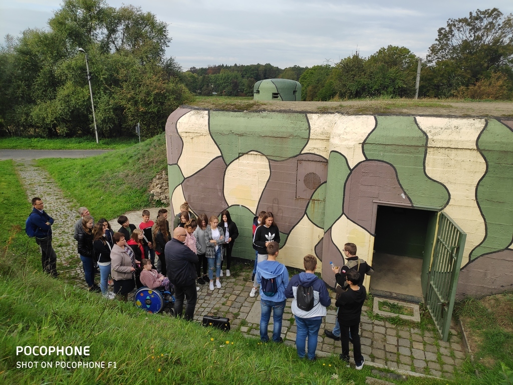 Na nietypową lekcję historii udali się uczniowie siódmej i ósmej klasy 27 września 2019 r. do schronu bojowego w Dobieszowicach. Ciężki schron bojowy nr 52 „Wesoła”, będący jednym z obiektów Obszaru Warownego „Śląsk” został zbudowany w 1937 z betonu i wyposażony w kopułę obserwacyjno-bojową. Przypuszcza się, że załogę schronu mogło stanowić nawet 12-15 osób. Obecnie obiektem opiekuje się Stowarzyszenie Na Rzecz Zabytków Fortyfikacji „Pro Fortalicium”. Przeprowadziło ono remont schronu i adaptację na cele muzealne. Z zewnątrz schron zwraca uwagę ochronnym malowaniem, a wchodząc do środka przenosimy się w czasie - wygląda tu niczym w 1939 roku. Cekaem Browning z instalacją chłodzącą, pancerz strzelnicy, taśma i skrzynki amunicyjne, panorama ogniowa... Bo w izbie muzealnej, w jaką przekształcono schron, możemy się zapoznać z jego budową, uzbrojeniem i wyposażeniem, z warunkami, w jakich przebywała załoga 80 lat temu. Historię, budowę oraz wyposażenie schronu przybliżył uczniom członek Stowarzyszenia na Rzecz Zabytków Fortyfikacji "Pro Fortalicium" - pan Kamil Kańczugowski. Pełna pasji opowieść przewodnika oraz wyjątkowo interesujące rekwizyty muzealne z pewnością na długo zapiszą się w pamięci uczestników tej niezwykłej lekcji historii.