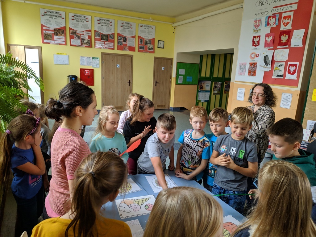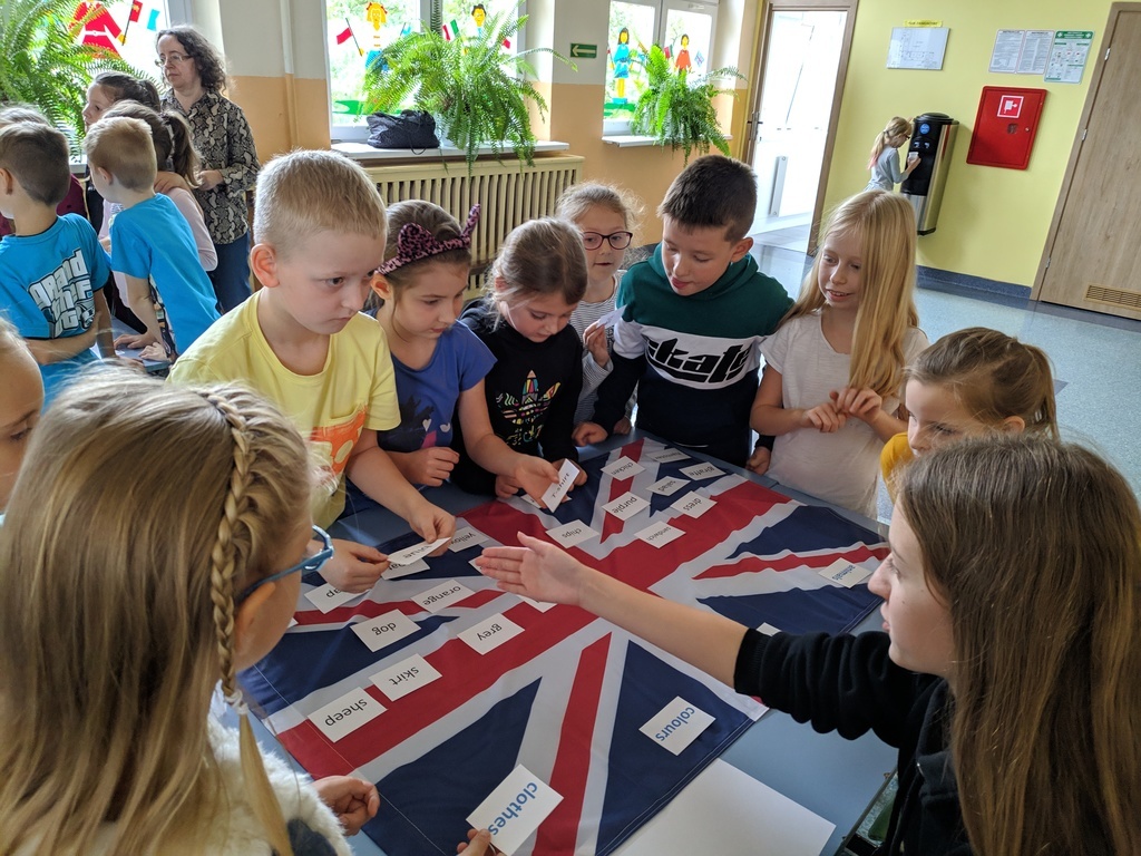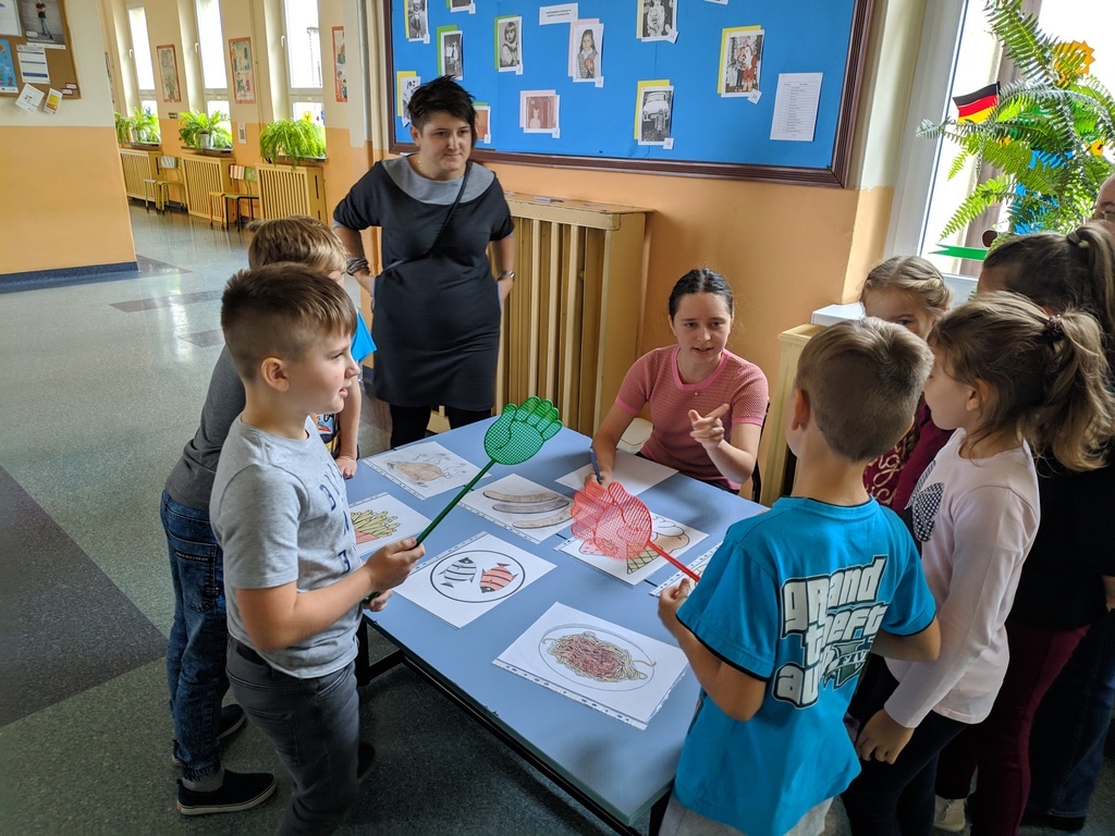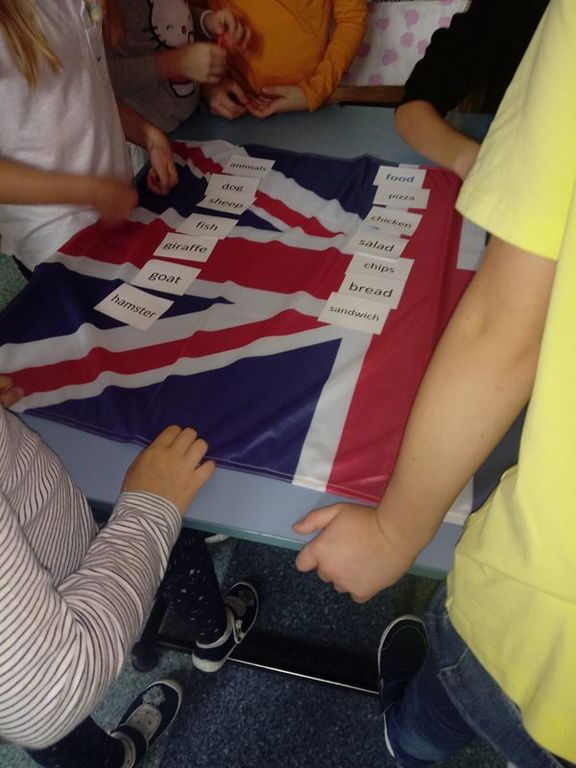 Klasy młodsze musiały wykazać się znajomością słownictwa oraz refleksem. Kto pierwszy uderzył łapką w obrazek, ten zdobył punkt dla grupy.