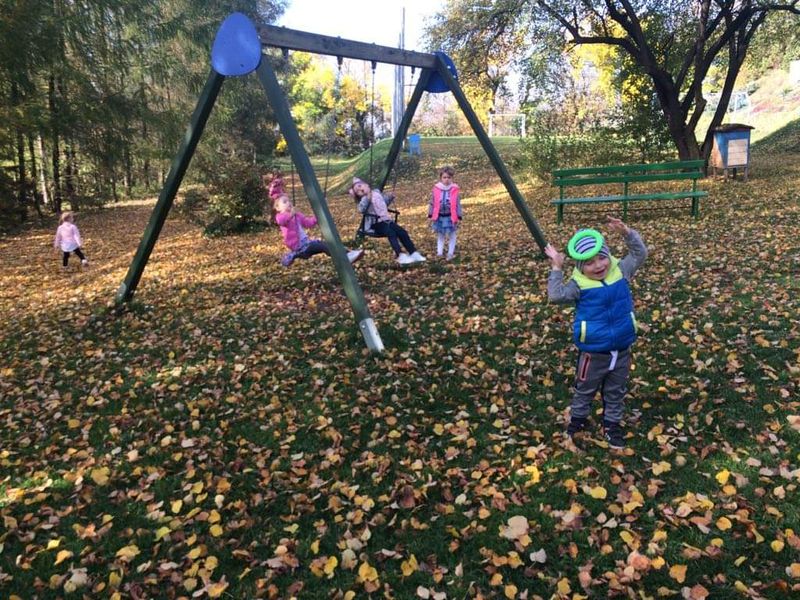 Nasze przedszkolaki korzystają z pięknej, jesiennej pogody. Codziennie wychodzimy do ogrodu przedszkolnego, obserwujemy zmieniającą się przyrodę, zbieramy kasztany i kolorowe liście, a także korzystamy ze sprzętu rekreacyjnego.