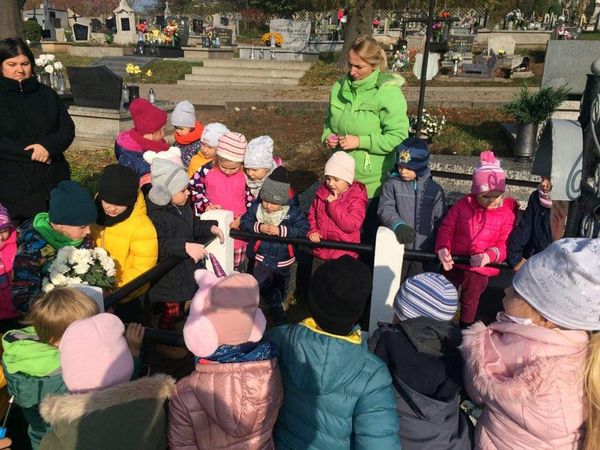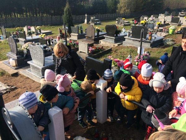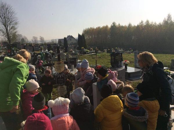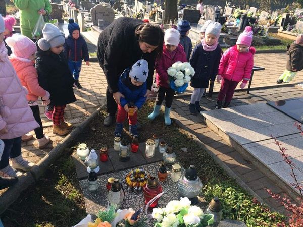 Tradycją naszego przedszkola jest pamięć o grobach poległych w walce o wolność i człowieczeństwo ludzi zasłużonych dla narodu. Jak powszechna i żywa jest ta pamięć świadczą wędrówki dzieci z wychowawcami na miejscowy Cmentarz Parafialny. Dzieci w nastroju zadumy i wspomnień złożyły kwiaty i znicze na Grobie Nieznanego Żołnierza i na Grobie Marynarza.
