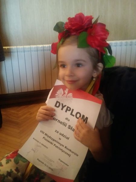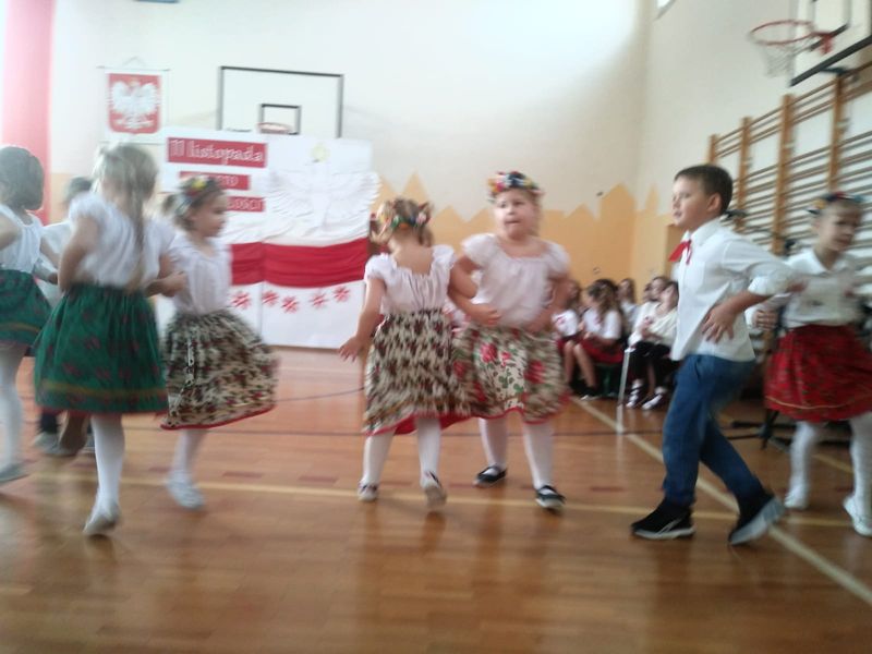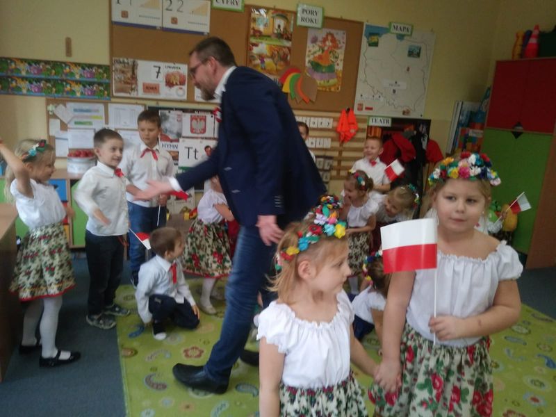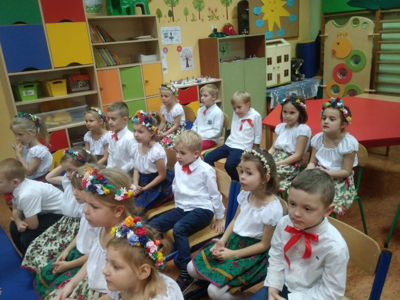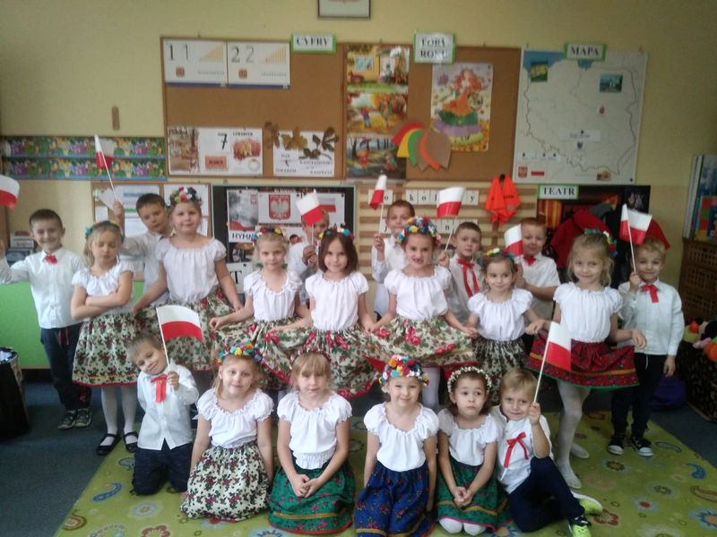 Z okazji obchodów Święta Niepodległości w przedszkolu odbył się cykl zajęć i koncertów o tematyce patriotycznej. Przedszkolaki wzięły udział w kolejnym spotkaniu z muzykami Filharmonii Śląskiej poznając muzykę wielkich polskich kompozytorów. Starszaki aktywnie włączyły się w szkolne obchody Święta Niepodległości prezentując taniec w strojach ludowych. Cała społeczność szkolno – przedszkolna w tym dniu odśpiewała o godz 11.11 Hymn Polski. Pan dyrektor osobiście pogratulował i podziękował przedszkolakom za występy artystyczne na szkolnej akademii:) Wykorzystując różne formy plastyczne dzieci wykonywały również polskie symbole narodowe a nasza koleżanka Kornelia Słaboń reprezentowała przedszkole na Międzygminnym Konkursie Piosenki Patriotycznej w Rogoźniku.