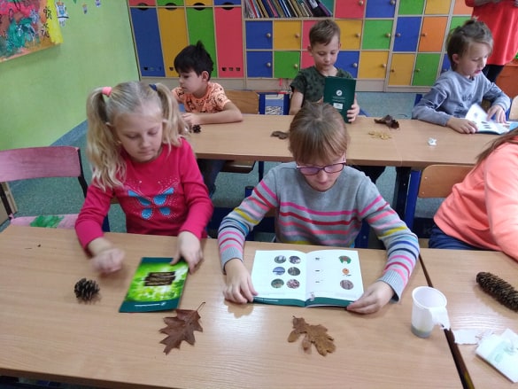 W dniu 19 listopada 2019 r. małych przyrodników z klas najmłodszych odwiedziła pani leśnik - Monika Pasterak. Pierwsze spotkanie dotyczyło wyjaśnienia bardzo ważnego problemu związanego ze zmiana koloru liści jesienią.