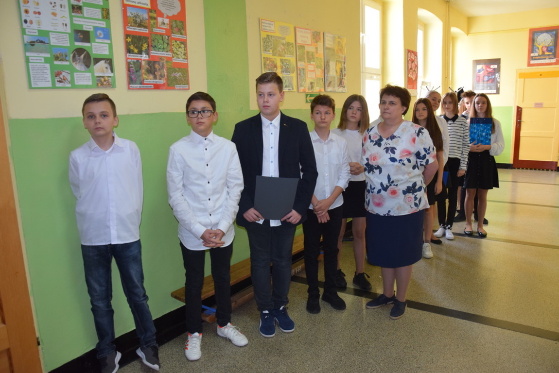 Uroczystość nie mogła odbyć się bez udziału uczniów SP w Sączowie. Społeczność uczniowską na otwarciu „zielonej pracowni” reprezentowali uczniowie klasy VII wraz z nauczycielem biologii Dorotą Surmą.