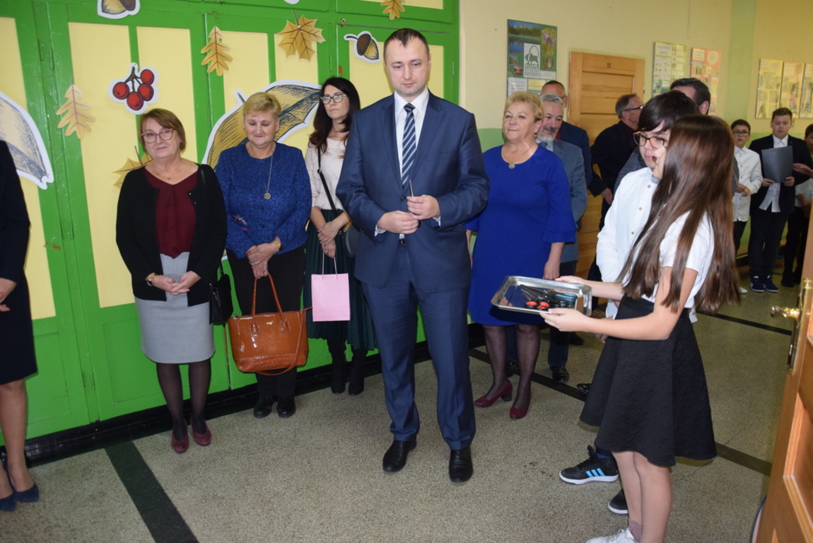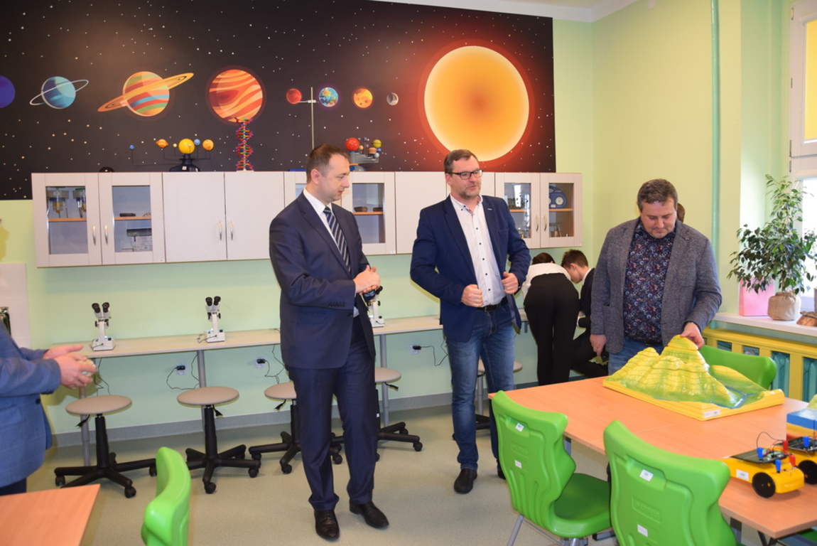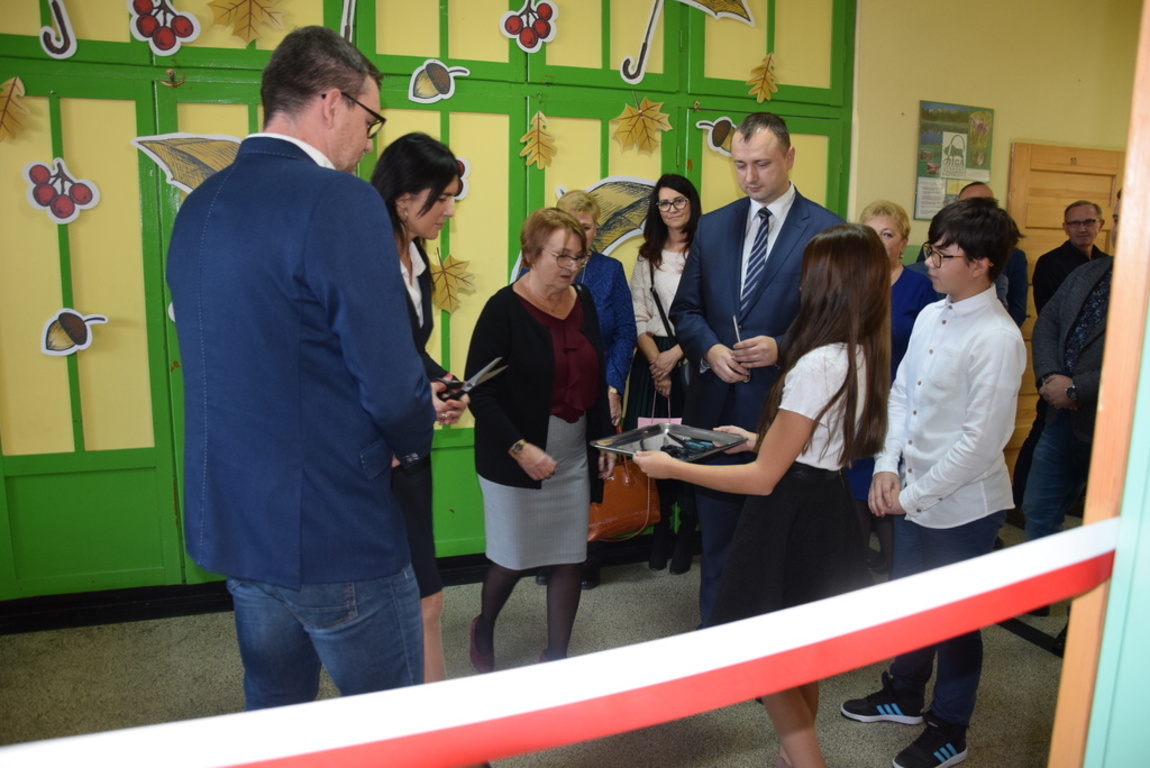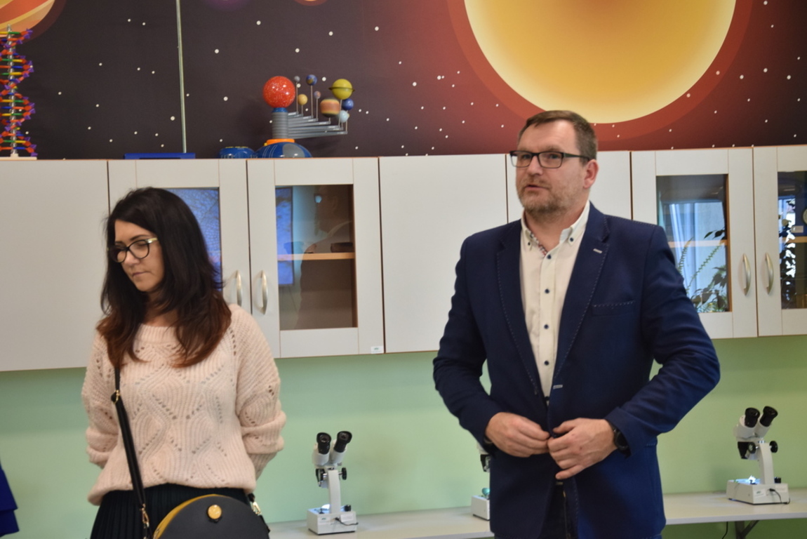 Przybyłych gości w drzwiach nowej pracowni powitał Dyrektor ZSP w Sączowie pan Damian Reszka.