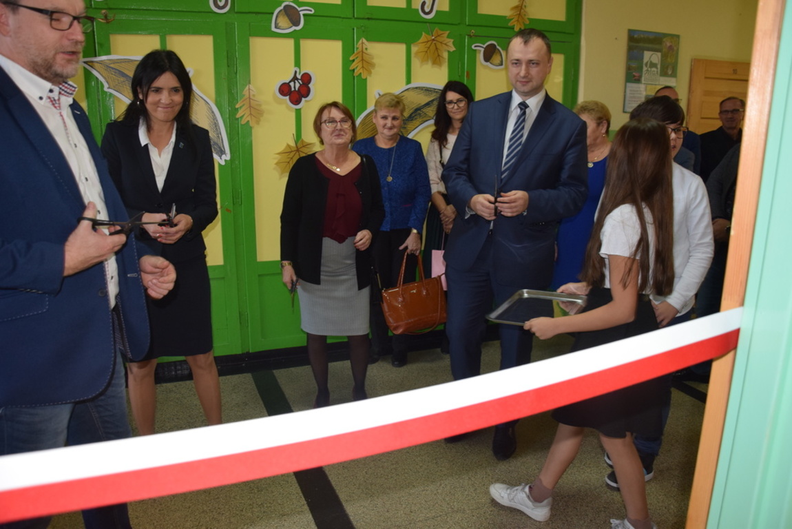 Najważniejszym momentem uroczystości było symboliczne przecięcie wstęgi. Aktu otwarcia nowej pracowni i przecięcia wstęgi dokonali wspólnie: Wójt Gminy Bobrowniki pani Małgorzata Bednarek, Prezes Zarządu WFOŚiGW w Katowicach pan Tomasz Bednarek, Dyrektor ZSP w Sączowie pan Damian Reszka i była Dyrektor ZSP w Sączowie pani Małgorzata Fijołek.
