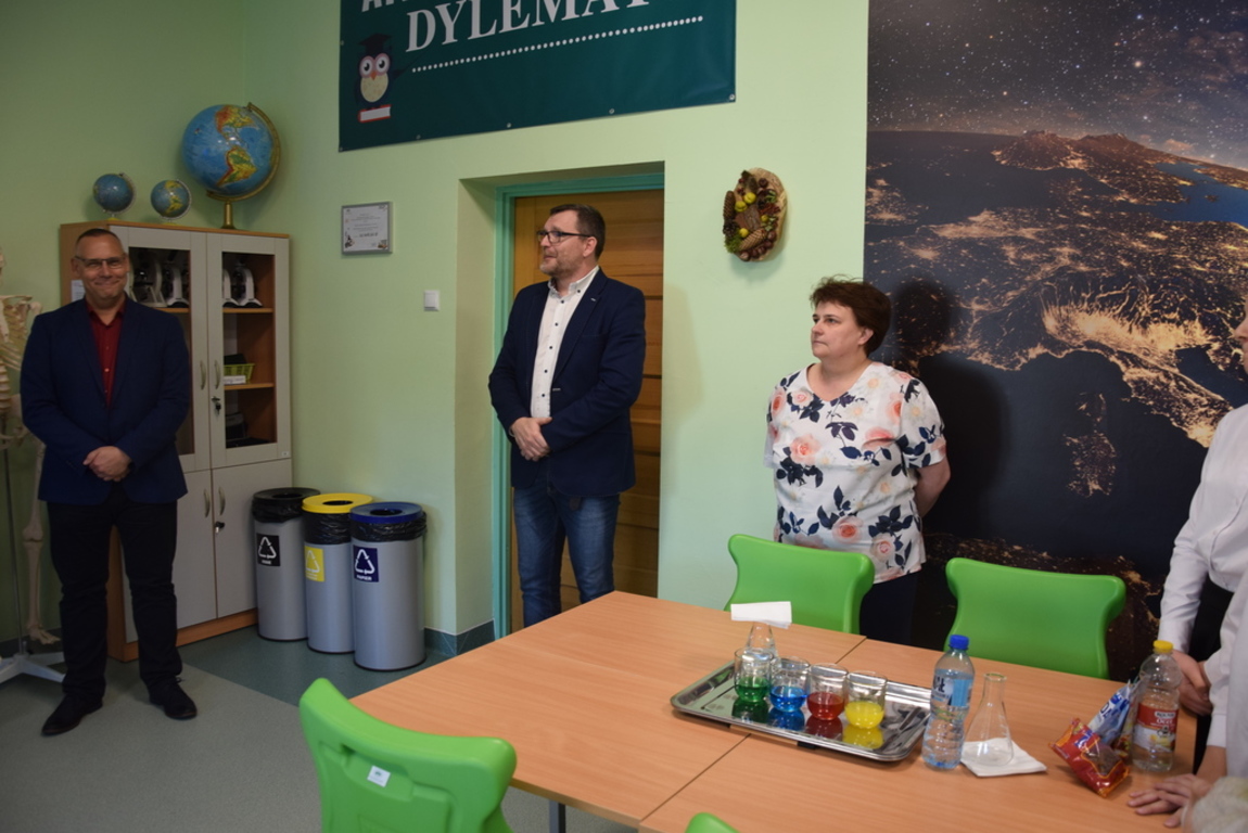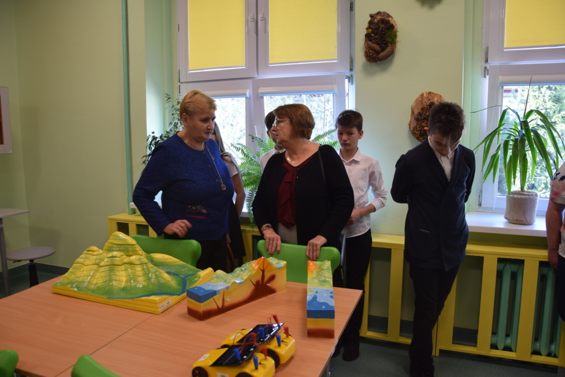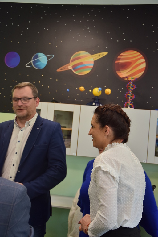Po oficjalnych ceremoniach goście mogli zwiedzić ekopracownię i zapoznać się z jej wyposażeniem. Zachwytom nie było końca! Goście byli pod wrażeniem wielości i różnorodności pomocy naukowych, wykorzystania przestrzeni i ogólnego wyglądu pracowni. Wśród wszechobecnej zieleni podkreślonej roślinami wspaniale prezentowały się pomoce i wyposażenie sali, a wśród nich: stanowiska do pracy z mikroskopami, multimedialny sprzęt, przyrządy optyczne i narzędzia do przeprowadzania różnorakich doświadczeń z dziedziny fizyki, chemii i biologii.