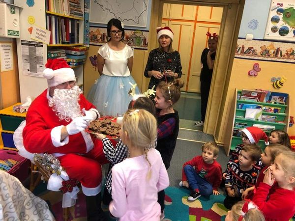 6 grudnia w naszym przedszkolu pojawił się długi oczekiwany gość – Święty Mikołaj. Powitaliśmy go wierszem i piosenką. Spotkanie minęło w bardzo miłej atmosferze i przyniosła dzieciom dużo radości. Święty Mikołaj obdarował wszystkie dzieci prezentami. Cieszymy się, że i tym razem o nas pamiętał i czekamy na jego wizytę w przyszłym roku.