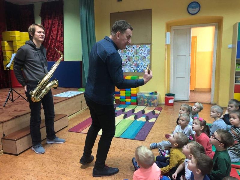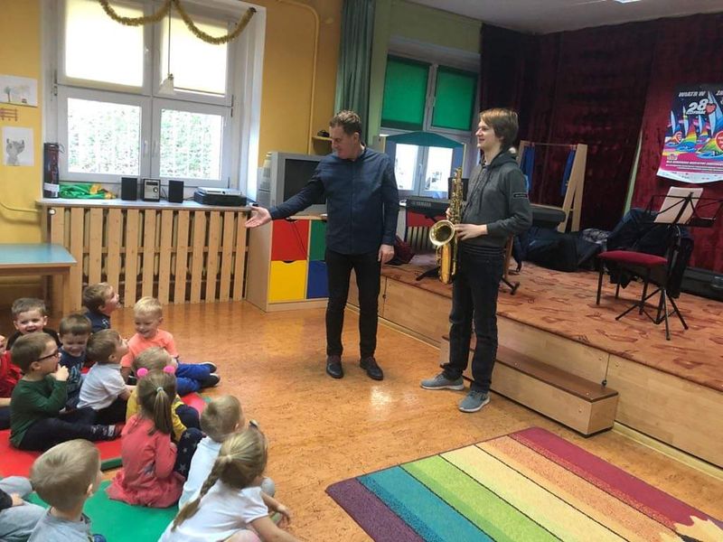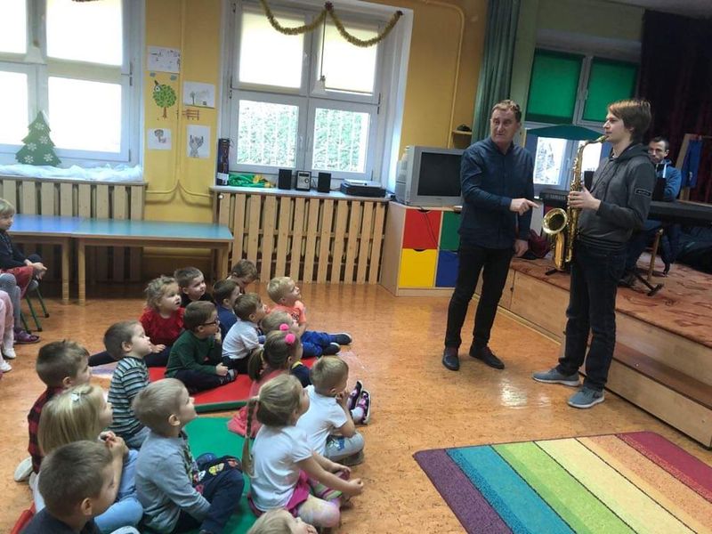 20 grudnia odbyło się kolejne spotkanie z Panią Gamą pt. „ W odległej galaktyce. Dźwięki z dużego ekranu na jazzowo.” Dzieci poznały nowy gatunek muzyczny, a także poznały budowę instrumentu - saksofonu.