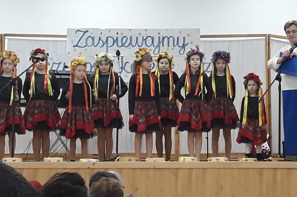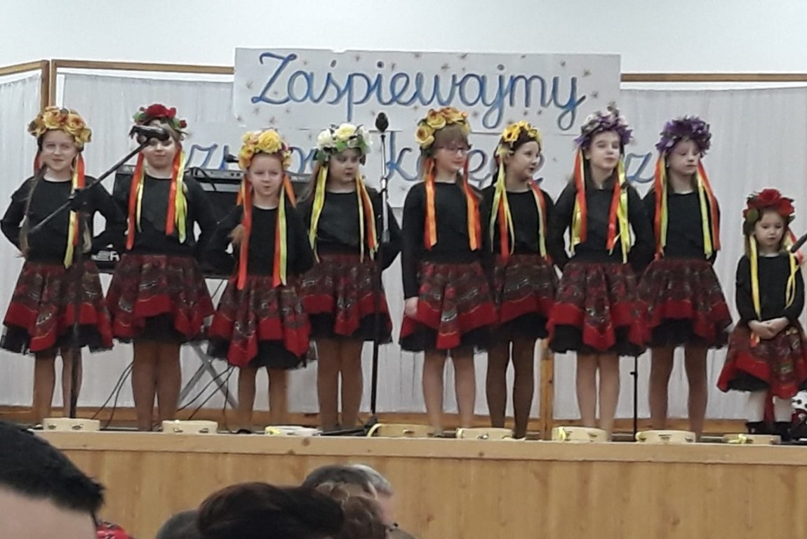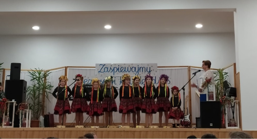 12 stycznia w Myszkowicach odbyło się Gminne Kolędowanie zespołów ludowych naszej społeczności. Na zaproszenie organizatorów koncert rozpoczął młodzieżowy zespół śpiewaczy Wianki, prezentując pastorałkę „ Zaśpiewajmy kolędę Jezusowi”. W skład zespołu wchodzą uczennice klasy trzeciej i piątej naszej szkoły, które w tym dniu od rana kwestowały z Wielką Orkiestrą Świątecznej Pomocy a wieczorem koncertowały wraz z zespołami śpiewaczymi Gminy Bobrowniki. Po części oficjalnej rozpoczynającej koncert kolędowy, zespół Wianki zaśpiewał pastorałkę „ Złota Jerozolima, biedne Betlejem” oraz „ Pastorałkę dla Jezusa”. Dziękujemy rodzicom za pomoc i współpracę w organizacji występów naszych uczennic z zespołu Wianki.