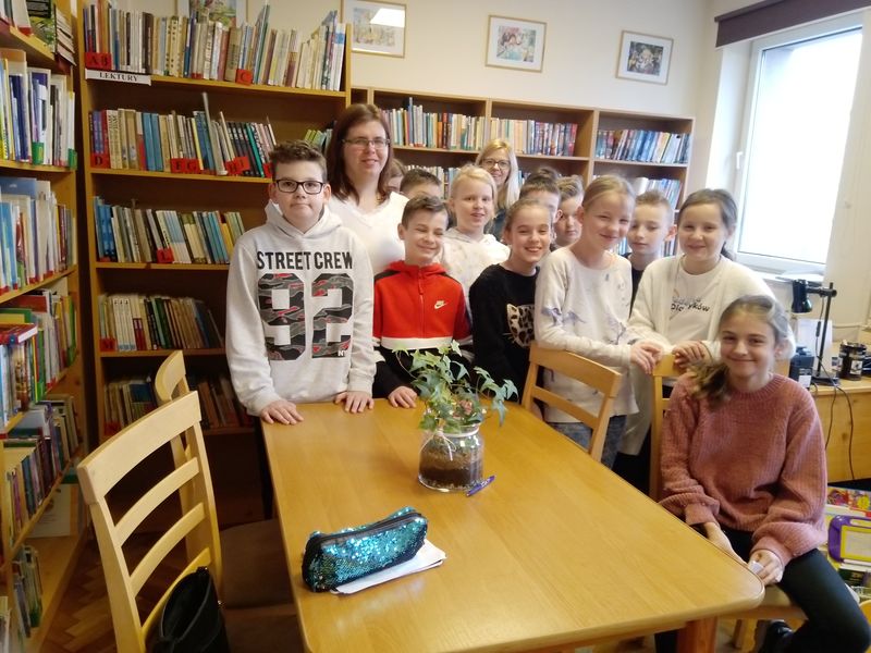 W czwartkowe przedpołudnie 9 stycznia 2020 r. Bibliotekę Publiczną w Sączowie odwiedzili uczniowie klasy V wraz z nauczycielką języka polskiego p. Aleksandrą Orłowską. Piątoklasiści uczestniczyli w zajęciach bibliotecznych przeprowadzonych przez bibliotekarkę p. Małgorzatę Trzcionkę.