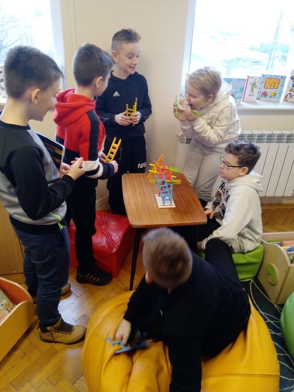 Uczniowie mieli możliwość pograć w gry planszowe, których jest wiele w bibliotece i są one dostępne dla osób odwiedzających to miejsce. Duże zainteresowanie wzbudziła gra zręcznościowa „Walka o stołki” i grającym dostarczyła wiele emocji. Powodzeniem cieszyła się także gra na spostrzegawczość „Dobble”.