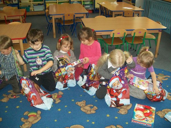 6 grudnia – Mikołajki, ten wyjątkowy dzień dla dzieci świętowaliśmy 6 i 7 grudnia. We wtorek 6.XII odwiedził nas gościnnie Święty Mikołaj, który wędrując po szkole nie zapomniał także o najmłodszych. 7 XII w środę Przedszkole zaproszone zostało na spektakl mikołajkowy pt. „Dziadek do orzechów” do Gminnego Ośrodka Kultury w Bobrownikach. Po powrocie na dzieci czekały niespodzianki zorganizowane przez rodziców.