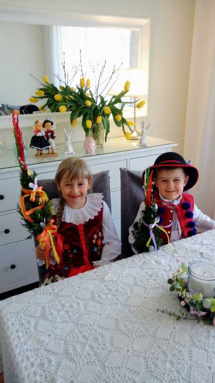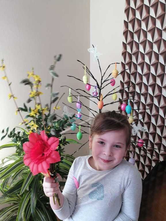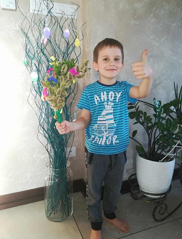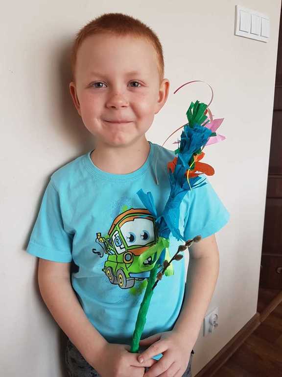 Poznawanie tradycji i zwyczajów związanych z obchodami Świąt Wielkanocnych przybrało w tym roku formę rodzinnych prac plastycznych. Dzieci w ramach realizowanych zajęć Domowego Przedszkola przygotowały materiały i robiły Palmę Wielkanocną ze swoimi rodzicami. Działania plastyczne poprzedzone były rekolekcyjnymi zajęciami online, które przygotowała nasza Pani katechetka. Przedszkolaki robiły zdjęcia i nagrywały filmiki ze swoją palmą oraz pozdrowieniami dla kolegów i koleżanek. Filmiki i zdjęcia dotarły do dzieci w poranek Niedzieli Palmowej.