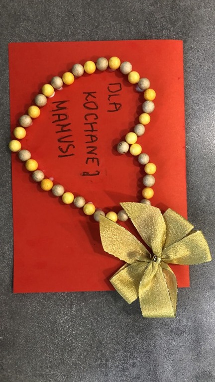 - wykonać prezent: np kwiat z papieru, obrazek, korale itp.,