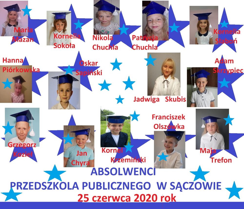 Absolwenci Przedszkola Publicznego w Sączowie w roku szkolnym 2019/2020