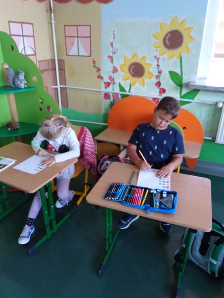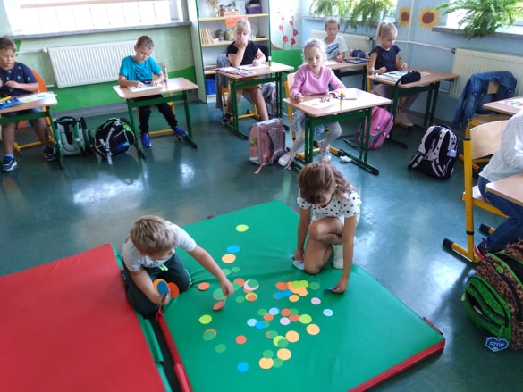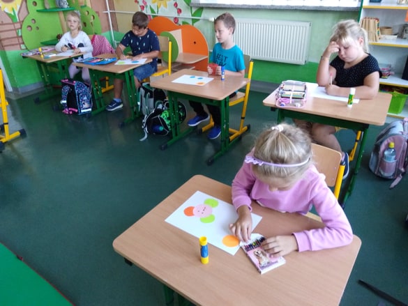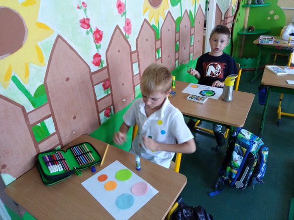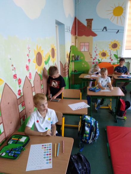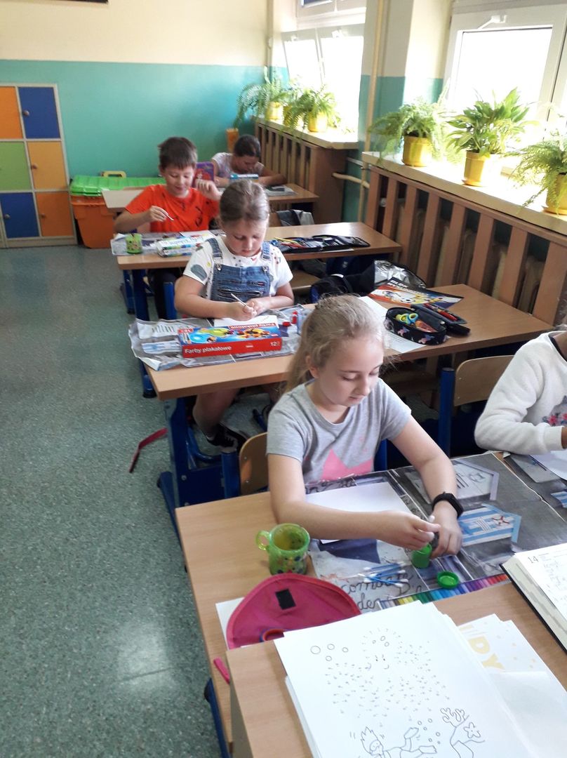 Uczniowie z pełnym zaangażowaniem uczestniczyli w zajęciach, które pomagały im odkryć talenty, poznać swoje mocne strony i zaprezentować innym efekty swojej pracy. Podczas lekcji plastyki uczniowie wykonywali prace z kolorowych kropek, a na muzyce śpiewali piosenkę o kropce. Nie zabrakło łamigłówek i zagadek matematycznych z kropką w roli głównej. Aż żal było kończyć wesołą zabawę, ale cóż ... nastał koniec i Kropka.