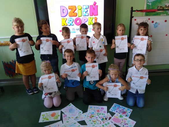 Uczniowie klasy I, II i III święto Kropki uczcili kreatywną twórczością oraz wspaniałą zabawą. W klasach zaroiło się od kolorowych krop, kropek i kropeczek, bowiem uczniowie w tym dniu założyli ubrania w kropki.