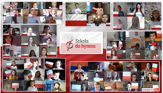 W przeddzień Narodowego Święta Niepodległości, 10 listopada punktualnie o godz. 11:11, uczniowie i nauczyciele naszej szkoły odśpiewali „Mazurka Dąbrowskiego”. Hymn to wielki symbol naszego narodu, naszej państwowości, naszej niepodległości. Ze względu na ograniczenia wynikające ze stanu epidemii tegoroczna akcja „Szkoła do hymnu”miała nieco odmienny charakter. Uczniowie i nauczyciele śpiewali hymn przede wszystkim w sposób wirtualny, łącząc się ze sobą za pomocą komunikatora Teams. Nasza społeczność szkolna włączyła się w obchody Narodowego Święta Niepodległości po raz trzeci biorąc udział w akcji "Szkoła do hymnu".