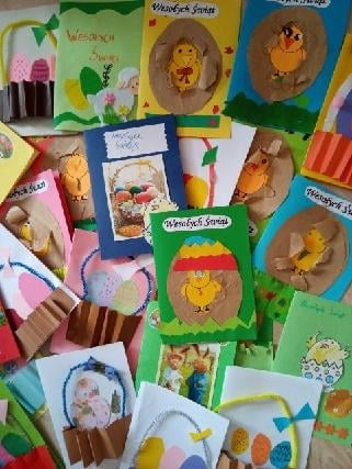 Uczniowie klasy I, II i III z naszej szkoły włączyli się do akcji świątecznej organizowanej przez Gminną Radę Seniorów w Bobrownikach i wykonali kartki wielkanocne.