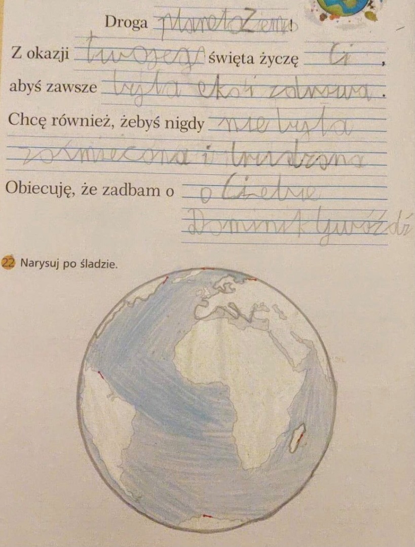 Każdy z nas jest mieszkańcem naszej planety i dlatego wszyscy powinniśmy czuć się odpowiedzialni za jej stan, ponieważ nasze życie jest od niej uzależnione. Ziemia żywi nas oraz stanowi podstawę naszego życia. Dlatego też 22 kwietnia obchodzony jest Międzynarodowy Dzień Ziemi. Jest to czas kiedy ludzie jednoczą siły, aby uświadomić wszystkim, że musimy być przyjaciółmi przyrody i dbać o nasze najbliższe środowisko.