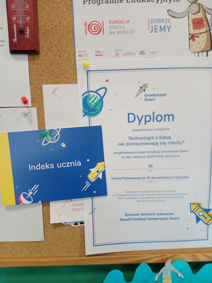 W roku szkolnym 2020/2021 uczniowie klasy III uczestniczyli w projekcie „Technologie z klasą. Jak porozumiewają się roboty”,w ramach programu Uniwersytet Dzieci w Klasie.