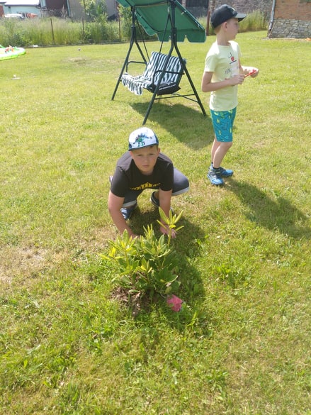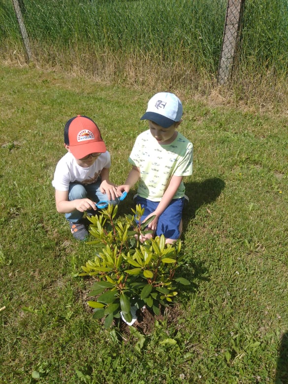 Korzystając z pięknej, słonecznej i prawie letniej pogody uczniowie klasy I wraz z wychowawczynią urządzili sobie niezwykła lekcję przyrody w terenie. Przedpołudnie, w środę 9 czerwca br. uczniowie spędzili w ogrodzie u swojej wychowawczyni. Podczas pobytu w ogrodzie uczniowie mieli okazję do polisensorycznego poznawania środowiska oraz do kształtowania właściwych postaw wobec przyrody. Obserwując przyrodę uczniowie w aktywny sposób zdobywali informacje o zwierzętach i roślinach z najbliższego otoczenia.