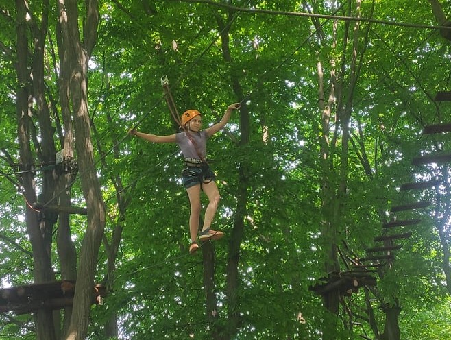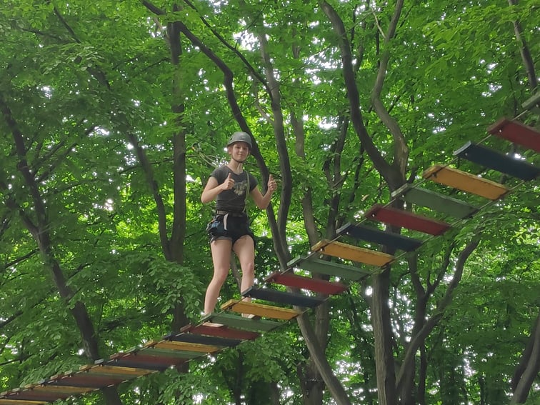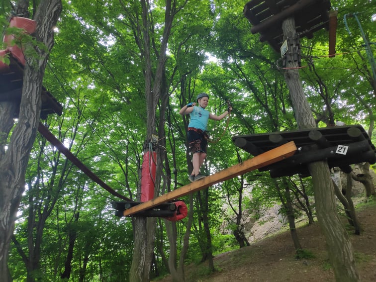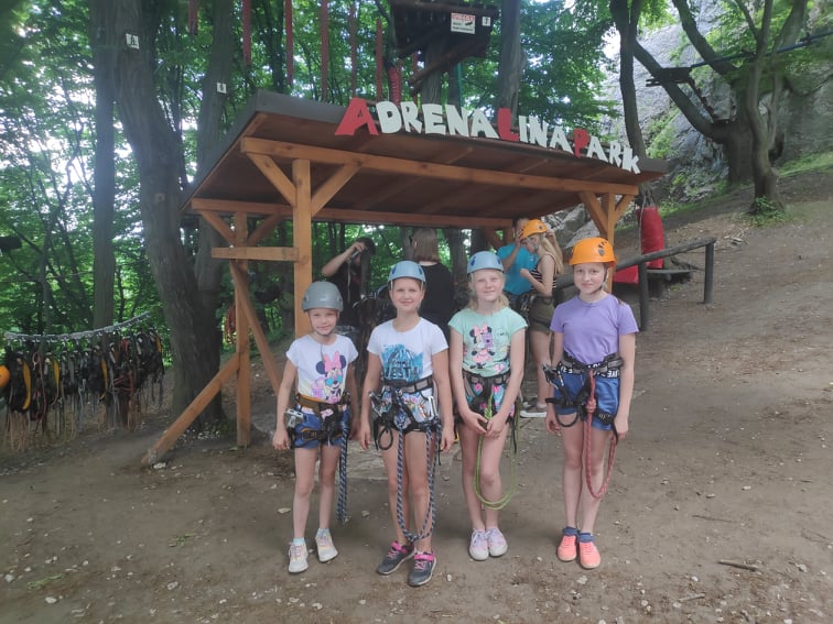 Kolejnego dnia, czyli 18 czerwca klasy IV-VIII wyruszyły do AdrenaLina Park, znajdującego się u stóp ruin Zamku Ogrodzieniec. Najbardziej odważni pokonali wspinaczkę skałkową oraz 33 przeszkody w parku linowym o łącznej długości 400 metrów pod okiem instruktorów. Na trasie czekały na nich aż 4 tyrolki, mosty, siatki, kładki, równoważnia, pętle oraz inne ciekawe przeszkody.