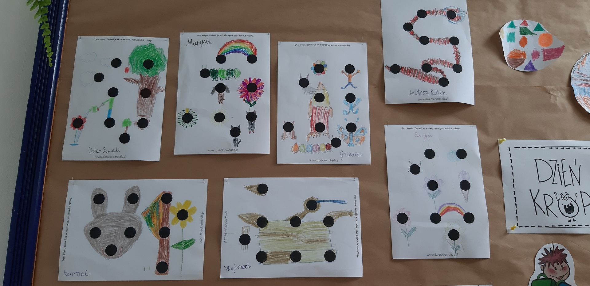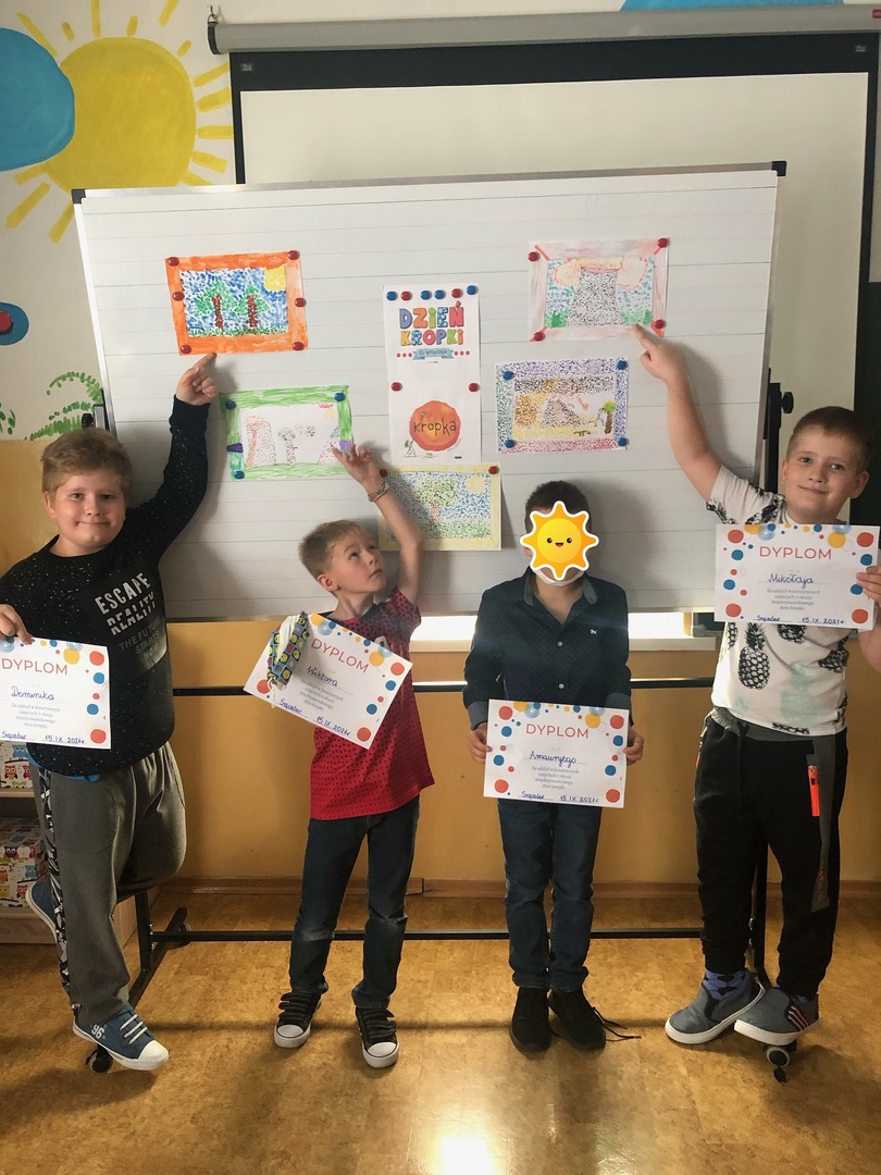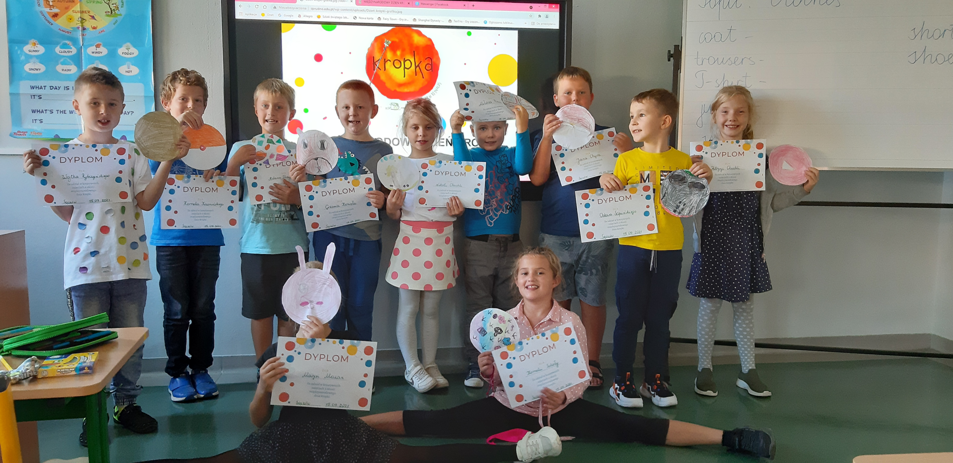 W dniu 15 września uczniowie klas I – III włączyli się do świętowania Międzynarodowego Dnia Kropki. Kropki były wszędzie: na buziach, ubraniach i w działaniach. Uczniowie poznali historię święta, uczestniczyli w grach i zabawach edukacyjnych, gdzie kropka była najważniejsza. Dzieci wykazały się dużą pomysłowością, fantazją, efektem czego są liczne prace plastyczne.